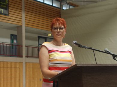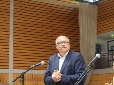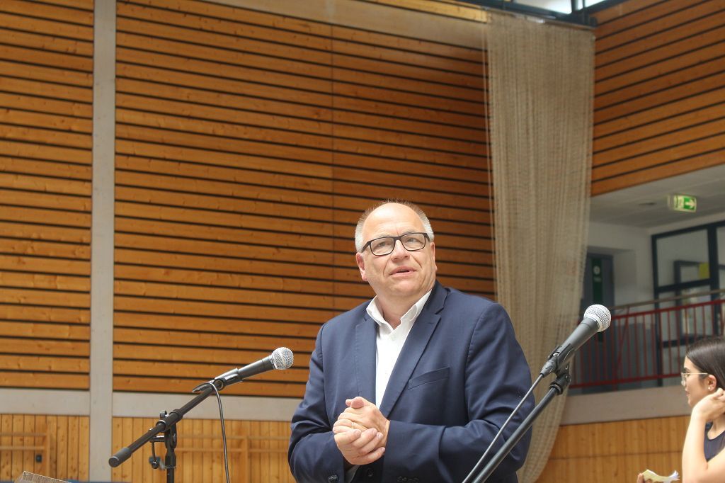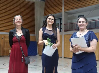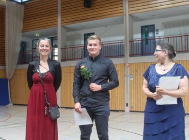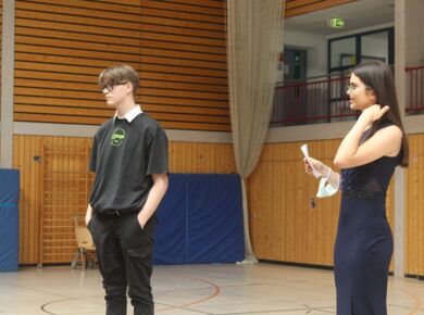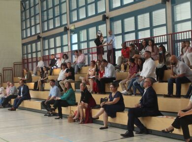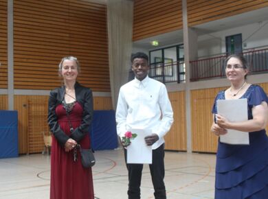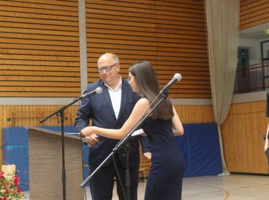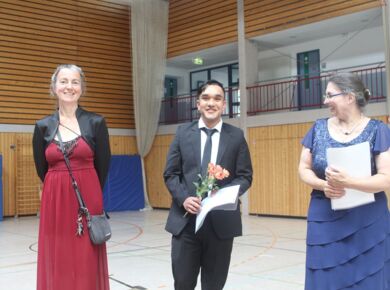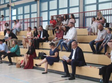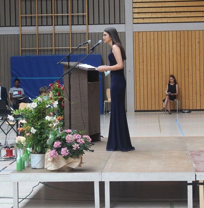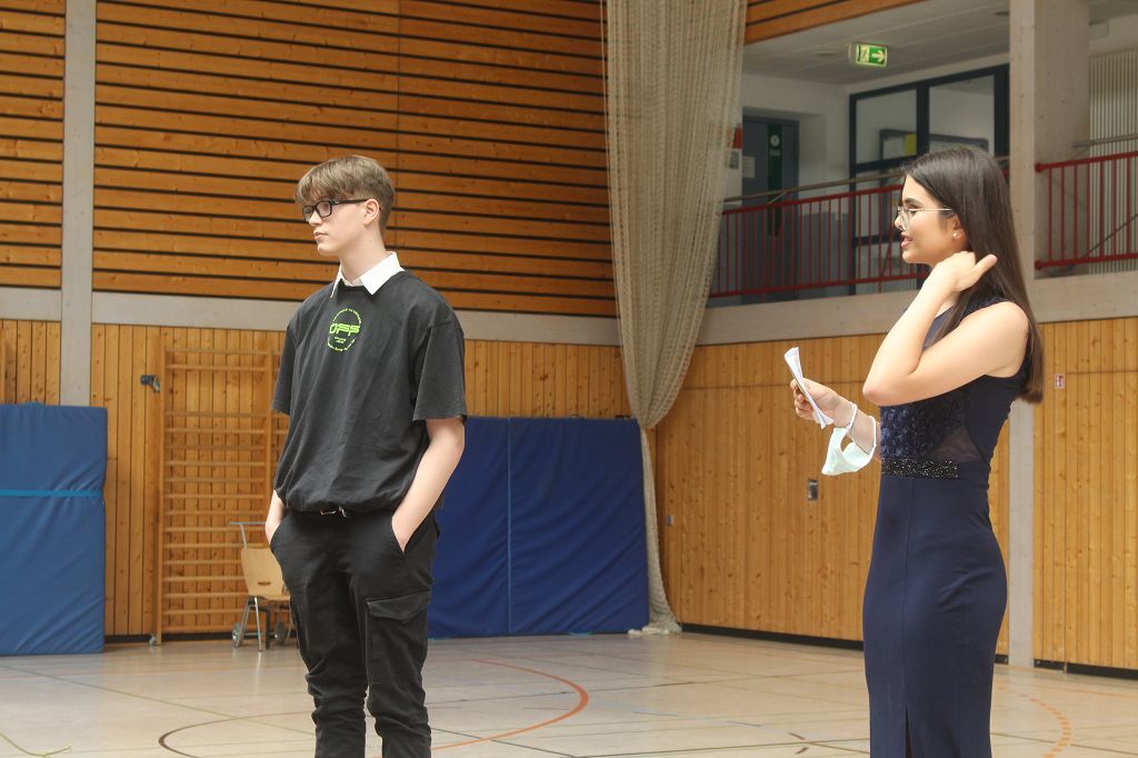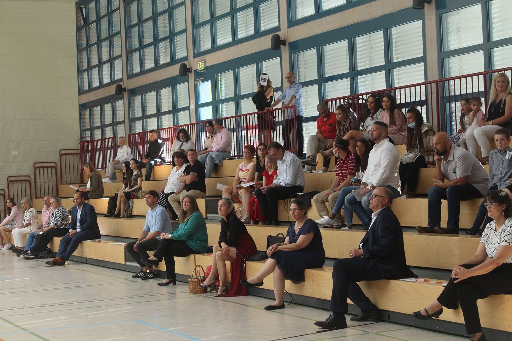 Die Feierlichkeiten fanden nicht wie sonst in der Aula der GSF, sondern aus Platzgründen in der Staufenhalle statt. Die Schülerinnen und Schüler wurden neben ihren Familien herzlich eingeladen, an den Feierlichkeiten teilzunehmen. Dazu mussten sich vorab alle Teilnehmer schriftlich anmelden. Bei der Feier selbst waren den Gästen dann feste Plätze zugewiesen, so dass die Abstandsgebote sehr gut einzuhalten waren.