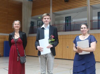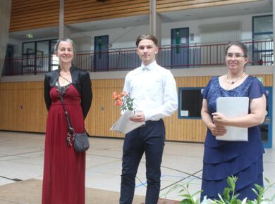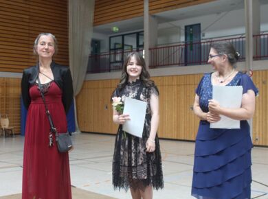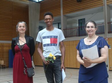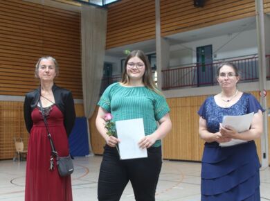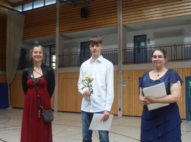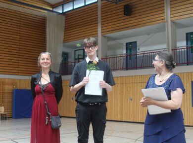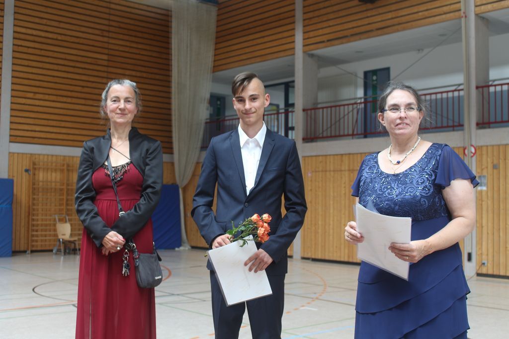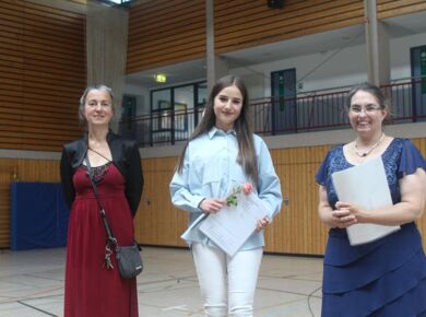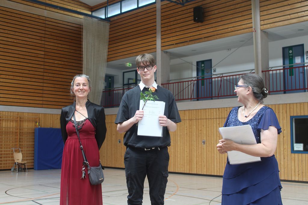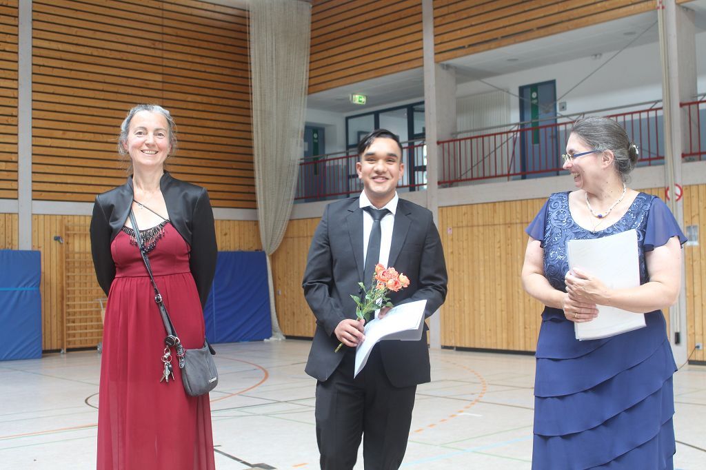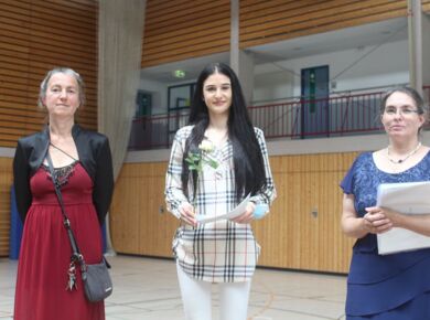 Da es leider keine Gruppenfotos geben durfte, wurde jede Schülerin und jeder Schüler nach der persönlichen Zeugnisübergabe mit der Klassenlehrerin und der Schulleiterin abgelichtet. Im Anschluss daran lud der Förderverein noch zu einem kleinen Umtrunk ein, bei dem mit Piccolos, Wasser oder Saft aus mitgebrachten Bechern auf die Abschlussinhaberinnen und -inhaber angestoßen wurde.
