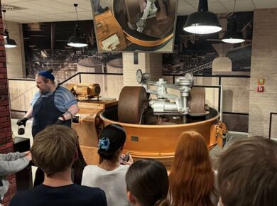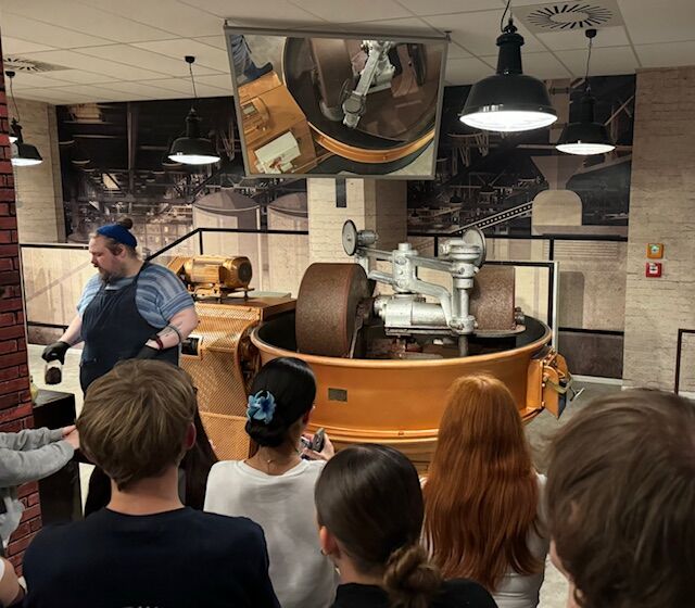 Im Chocoversum konnten wir nicht nur die einzelnen Schritte der Schokoladenherstellung von der Kakaobohne bis zum fertigen Produkt sehen, sondern an jeder Station die einzelnen Zwischenergebnisse und natürlich am Ende die leckere Schokolade verkosten. Die Missstände auf den Kakaoplantagen wurden deutlich angesprochen, und uns wurde gezeigt, wie wir mit unserem Kaufverhalten die Bedingungen für die Arbeiter verbessern können.