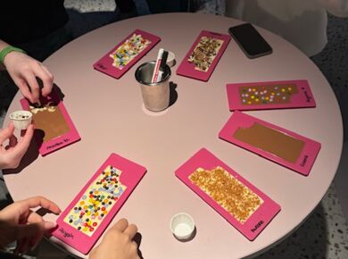 Als kleine Erinnerung an den Besuch durfte von allen Teilnehmern eine eigene Schokoladentafel mit besonderen Toppings gestaltet werden.