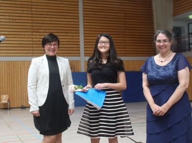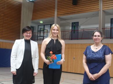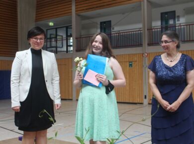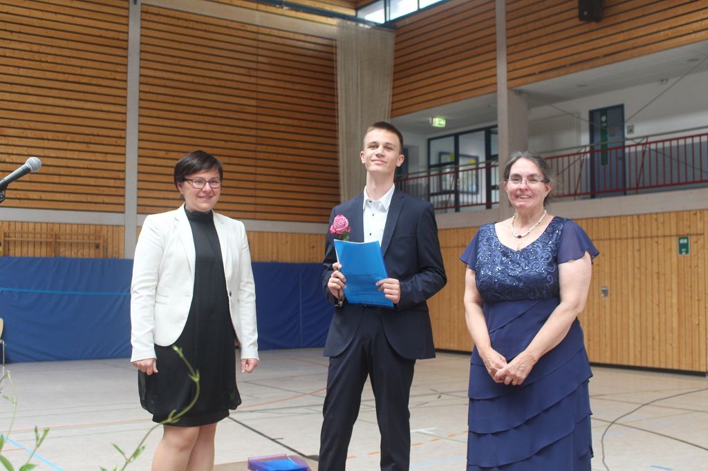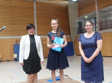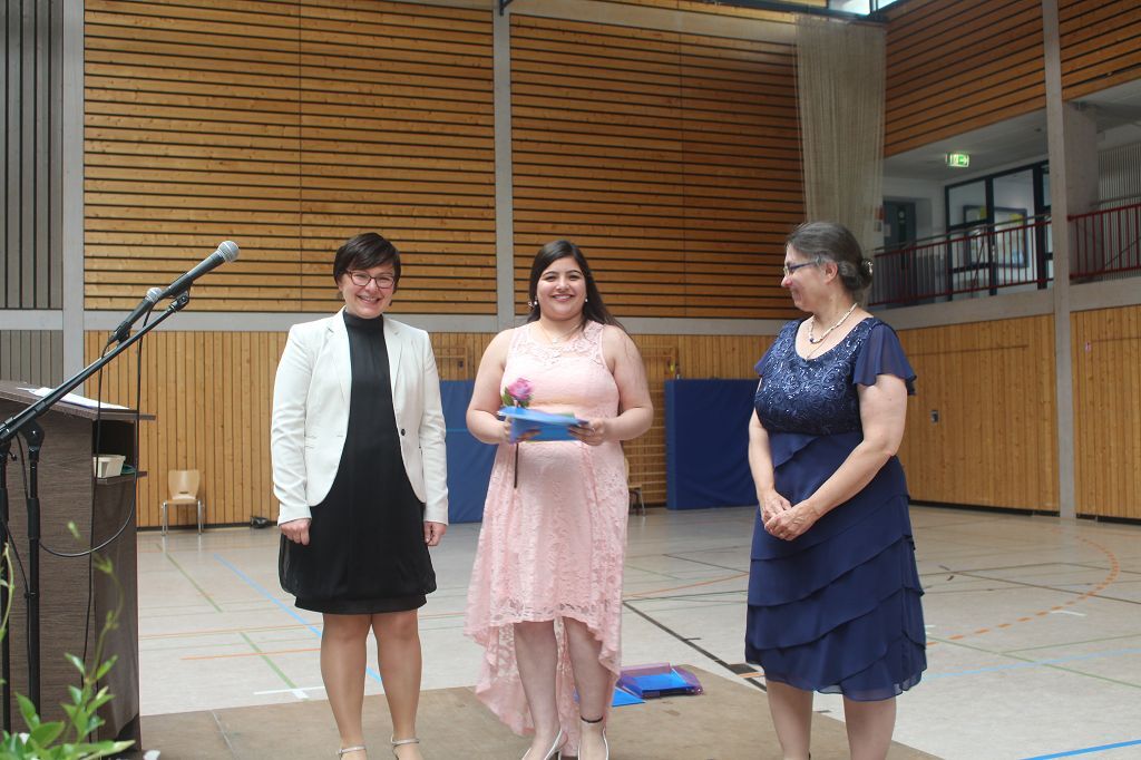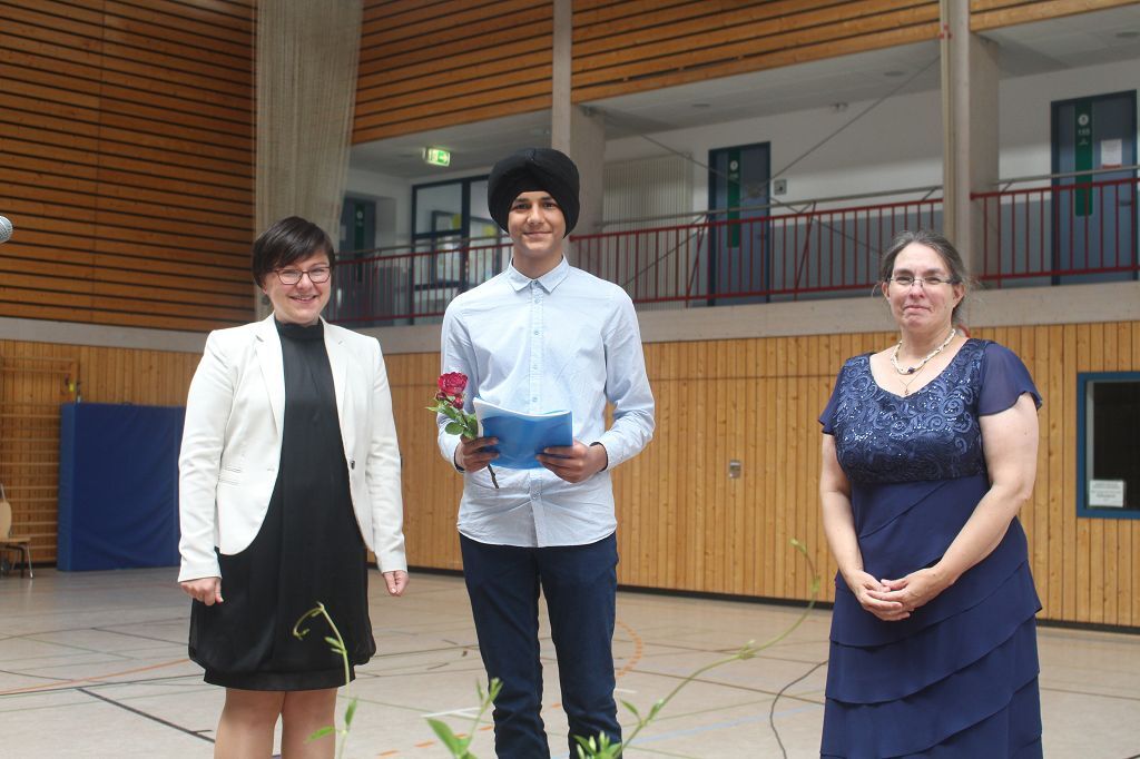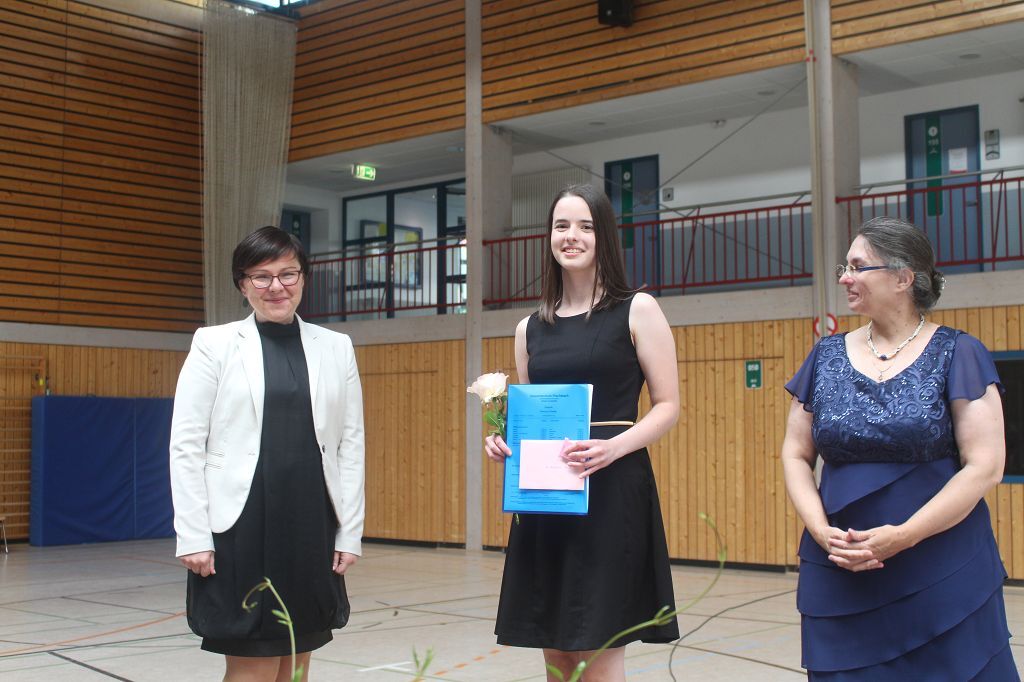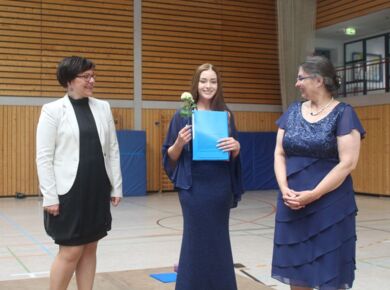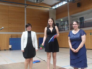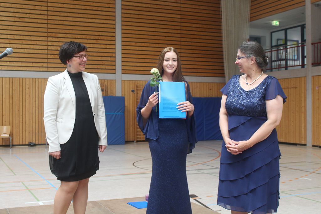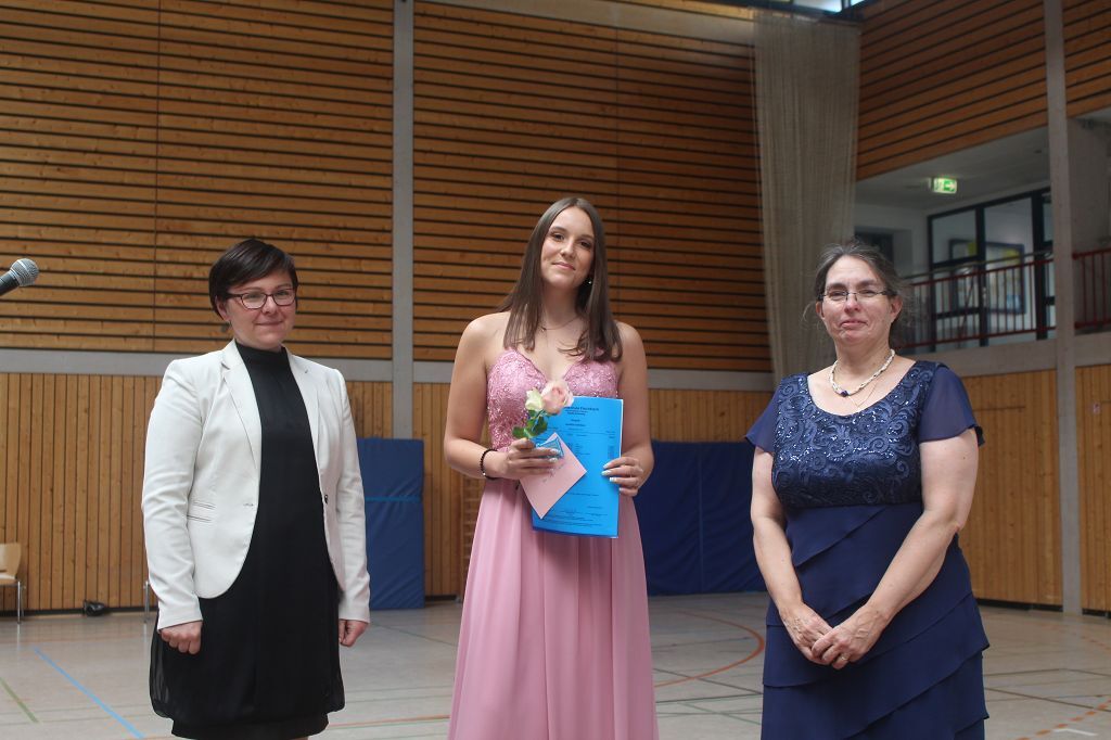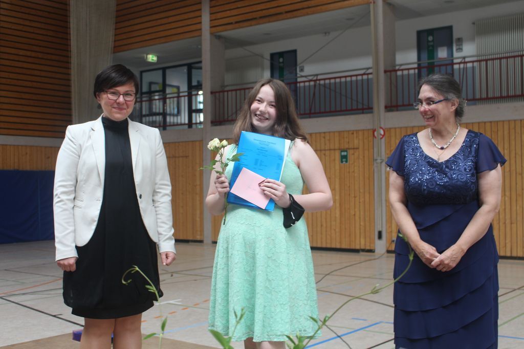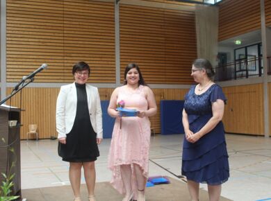 Da es leider keine Gruppenfotos geben durfte, wurde jede Schülerin und jeder Schüler nach der persönlichen Zeugnisübergabe mit der Klassenlehrerin und der Schulleiterin abgelichtet. Im Anschluss daran lud der Förderverein noch zu einem kleinen Umtrunk ein, bei dem mit Piccolos, Wasser oder Saft aus mitgebrachten Bechern auf die Abschlussinhaberinnen und -inhaber angestoßen wurde.