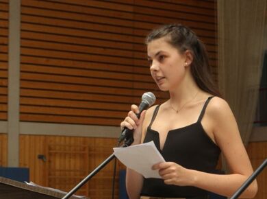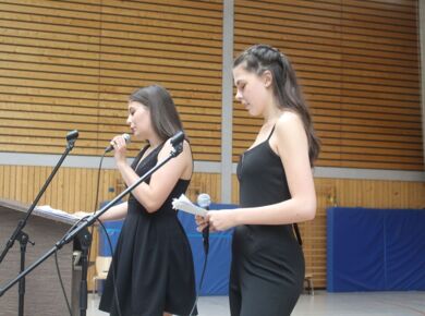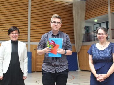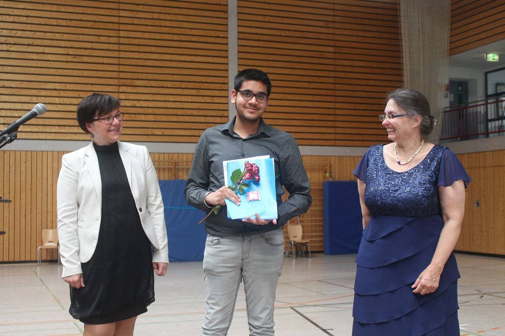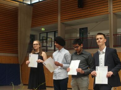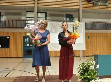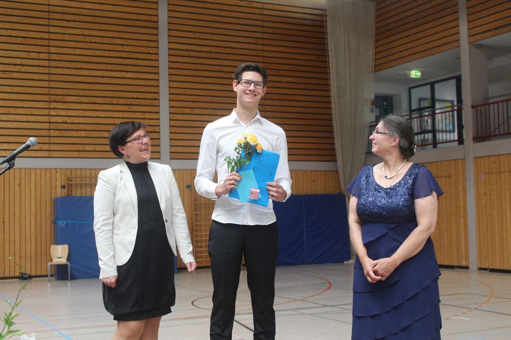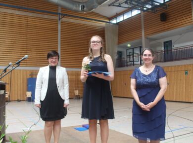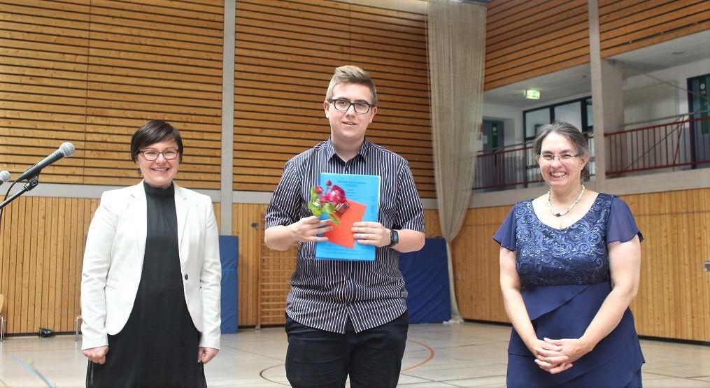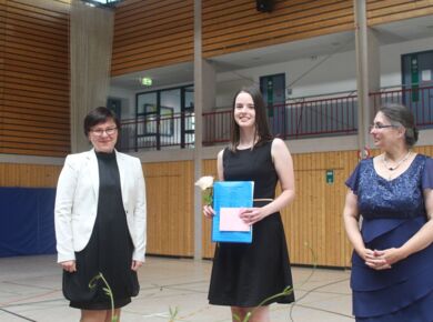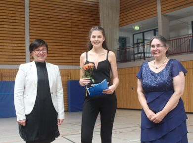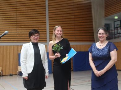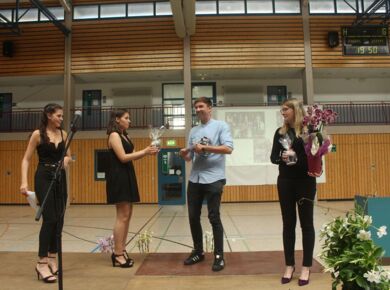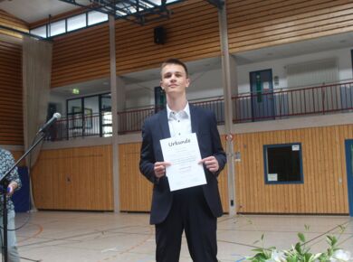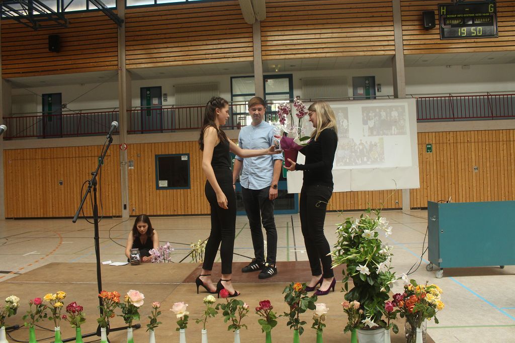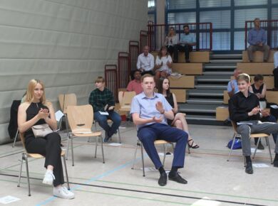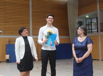 Die Feierlichkeiten fanden nicht wie sonst in der Aula der GSF, sondern aus Platzgründen in der Staufenhalle statt. Die Schülerinnen und Schüler wurden neben ihren Familien herzlich eingeladen, an den Feierlichkeiten teilzunehmen. Dazu mussten sich vorab alle Teilnehmer schriftlich anmelden. Bei der Feier selbst waren den Gästen dann feste Plätze zugewiesen, so dass die Abstandsgebote sehr gut einzuhalten waren.