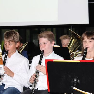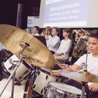 Statt zum Schulunterricht fuhren die 18 Schülerinnen und Schüler ins Botanical – eine neue und angesagte Location in Eppstein – und eröffneten mit „Tomahawk Dance“ und „Bandroom Boogie“ die Versammlung. Nach einer Podiumsdiskussion (u. a. mit Hessens Kultusminister Herrn Lorz) sorgten sie mit „Guantanamera“ noch einmal für Stimmung, bevor es mit dem Bus wieder Richtung Schule ging. Super gemacht – Applaus!