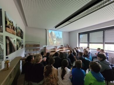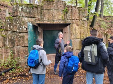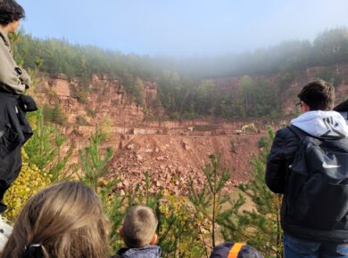Am Donnerstag vor den Herbstferien erlebten die Schülerinnen und Schüler der 6. Klasse des Gymnasialzweigs sowie der 9. Klasse des Realschulzweigs der Gesamtschule Fischbach dank der Familie Graf und der großzügigen Unterstützung der Bürgerstiftung Kelkheim einen ganz besonderen Tag im Steinbruch von Umpfenbach bei Miltenberg.