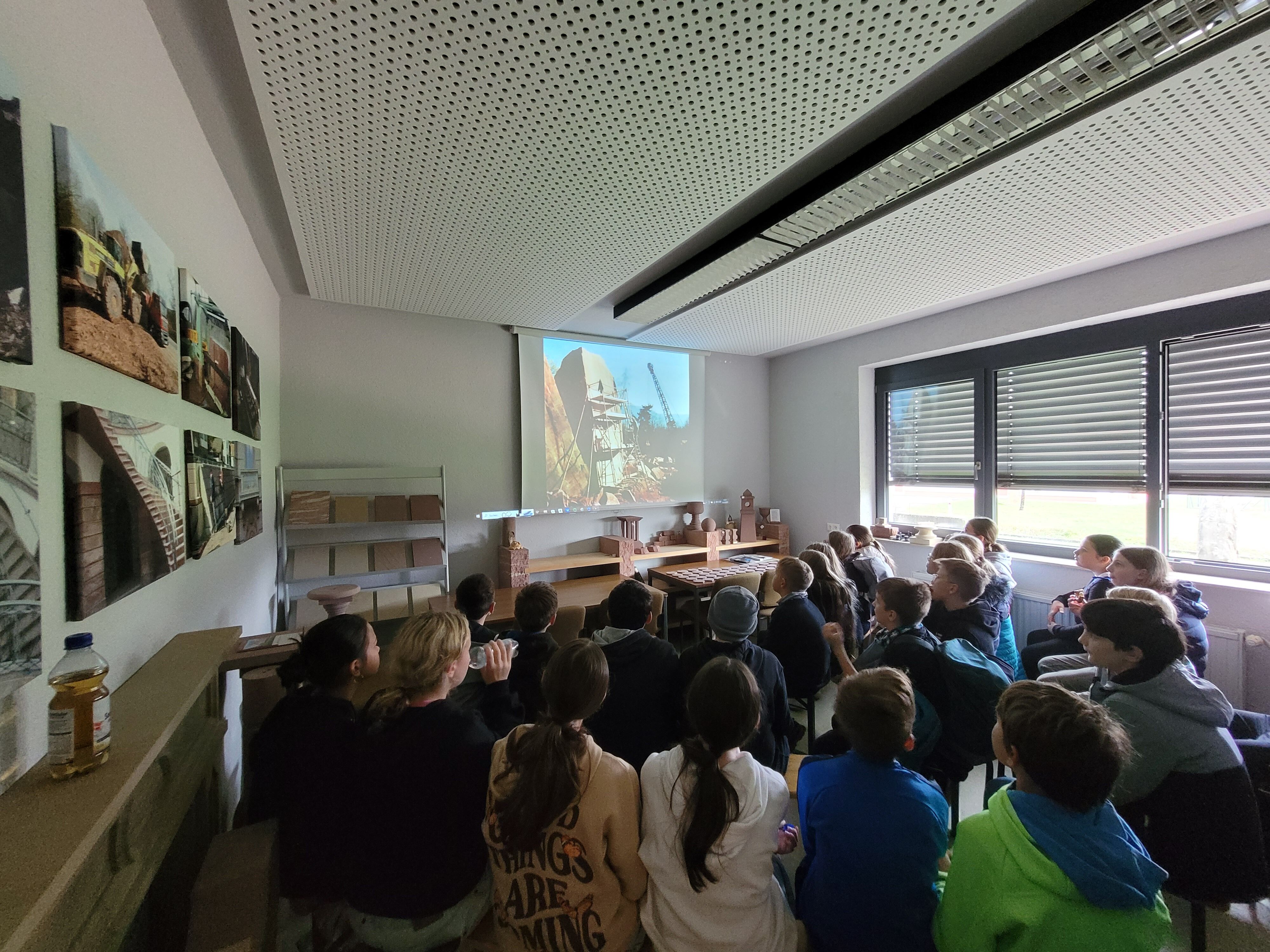 Der Tag begann mit einem Paukenschlag: einer spektakulären Sprengung im Steinbruch. Aus sicherer Entfernung konnten die Jugendlichen die gewaltigen Kräfte bestaunen, die beim Abbau von Gestein freigesetzt werden. Die Experten vor Ort sorgten für maximale Sicherheit und nahmen sich die Zeit, den Schülerinnen und Schülern den Ablauf der Sprengung zu erklären.