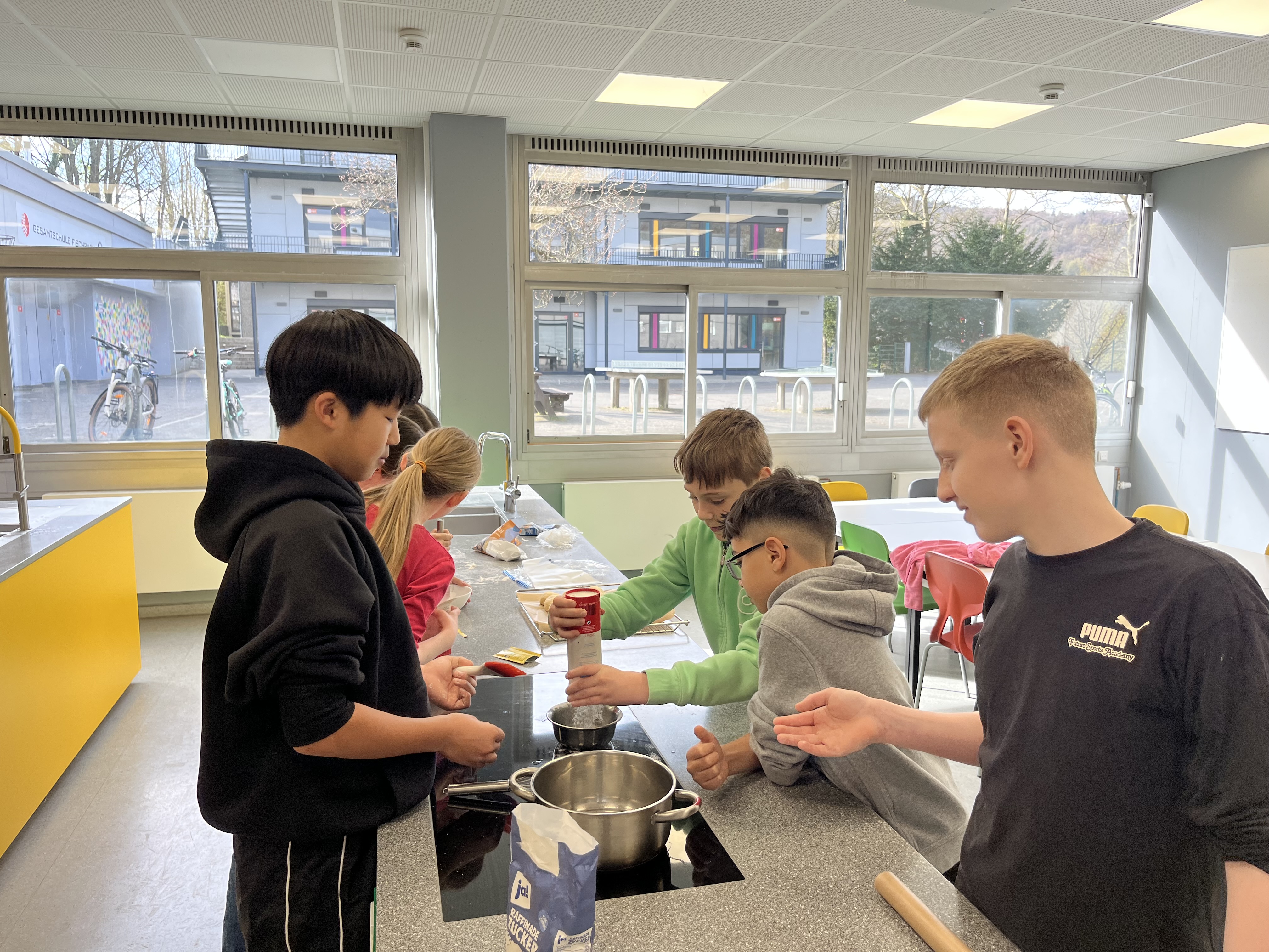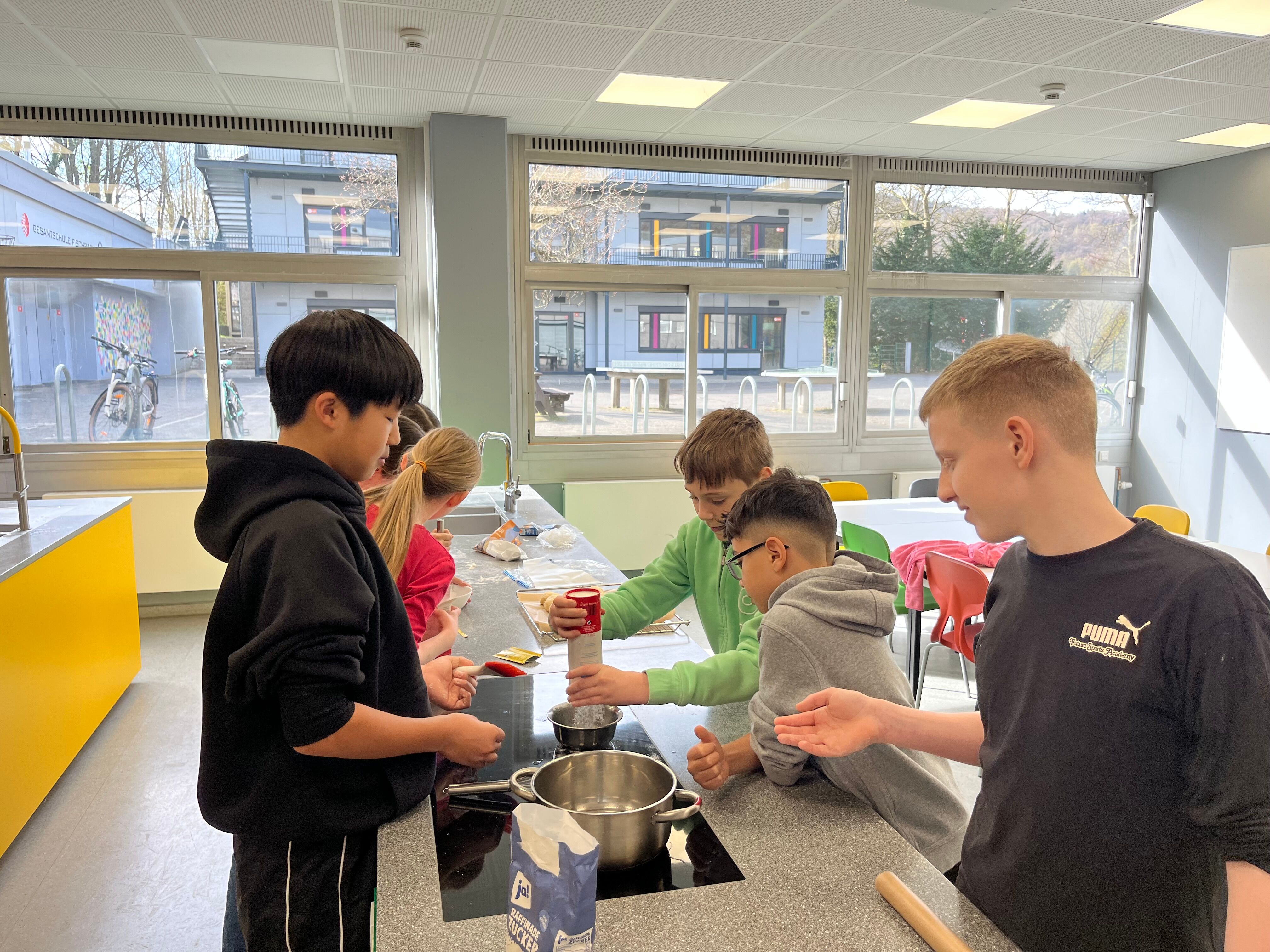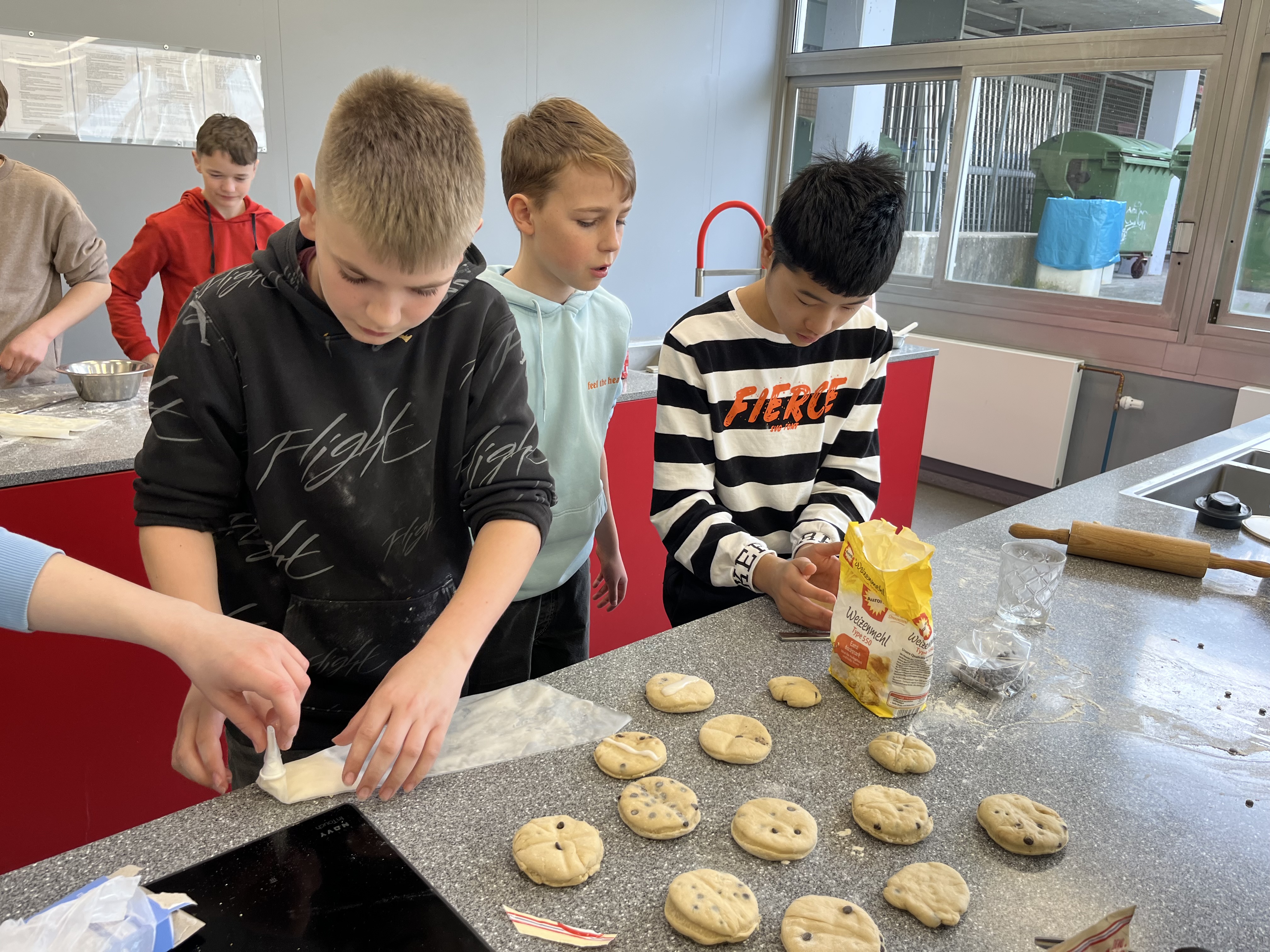 Im Unterricht lernten die Schülerinnen und Schüler nicht nur die kulturelle Bedeutung dieser Spezialität kennen, sondern wurden auch selbst aktiv: Mit viel Freude und Teamarbeit backten sie ihre eigenen Hot Cross Buns nach einem original englischen Rezept. Dabei konnten sie ihre Englischkenntnisse ganz praktisch anwenden, indem sie die Zutaten und Arbeitsschritte auf Englisch verstanden und umsetzten.