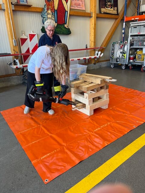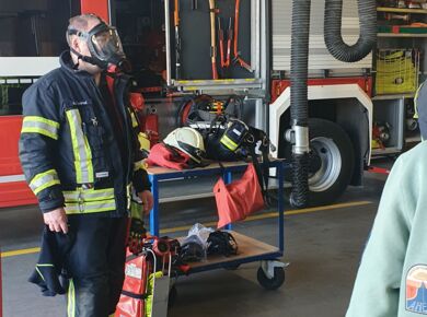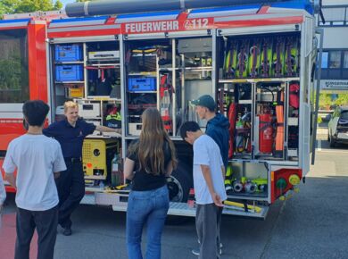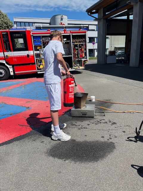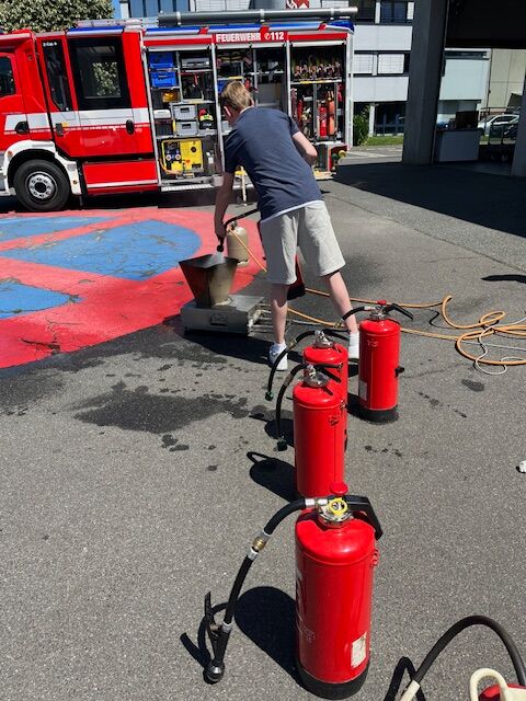 Nach einem informativen Theorieteil rund um die Themen Brandentstehung, Brandklassen, Ablauf eines Notrufs und Aufgaben der Feuerwehr konnten die Schülerinnen und Schüler in abwechslungsreichen Praxis-Stationen die Feuerwehr und ihre Geräte kennenlernen: