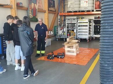 Sie haben ein Feuerwehrauto und dessen vielvältige Ausrüstung genau unter die Lupe genommen, durften mit einem Feuerlöscher löschen und so die Handhabung ausprobieren, mithilfe eines Rettungsspreizers Jenga spielen und außerdem die Schutzkleidung und ihre Funktionen kennengelernt. Den Abschluss des spannenden Vormittags bildete die Vorführung eines spektakulären Fettbrandes. Die Schülerinnen und Schüler hatten eine Menge Spaß, konnten viel Neues lernen und ihr Wissen praktisch anwenden.