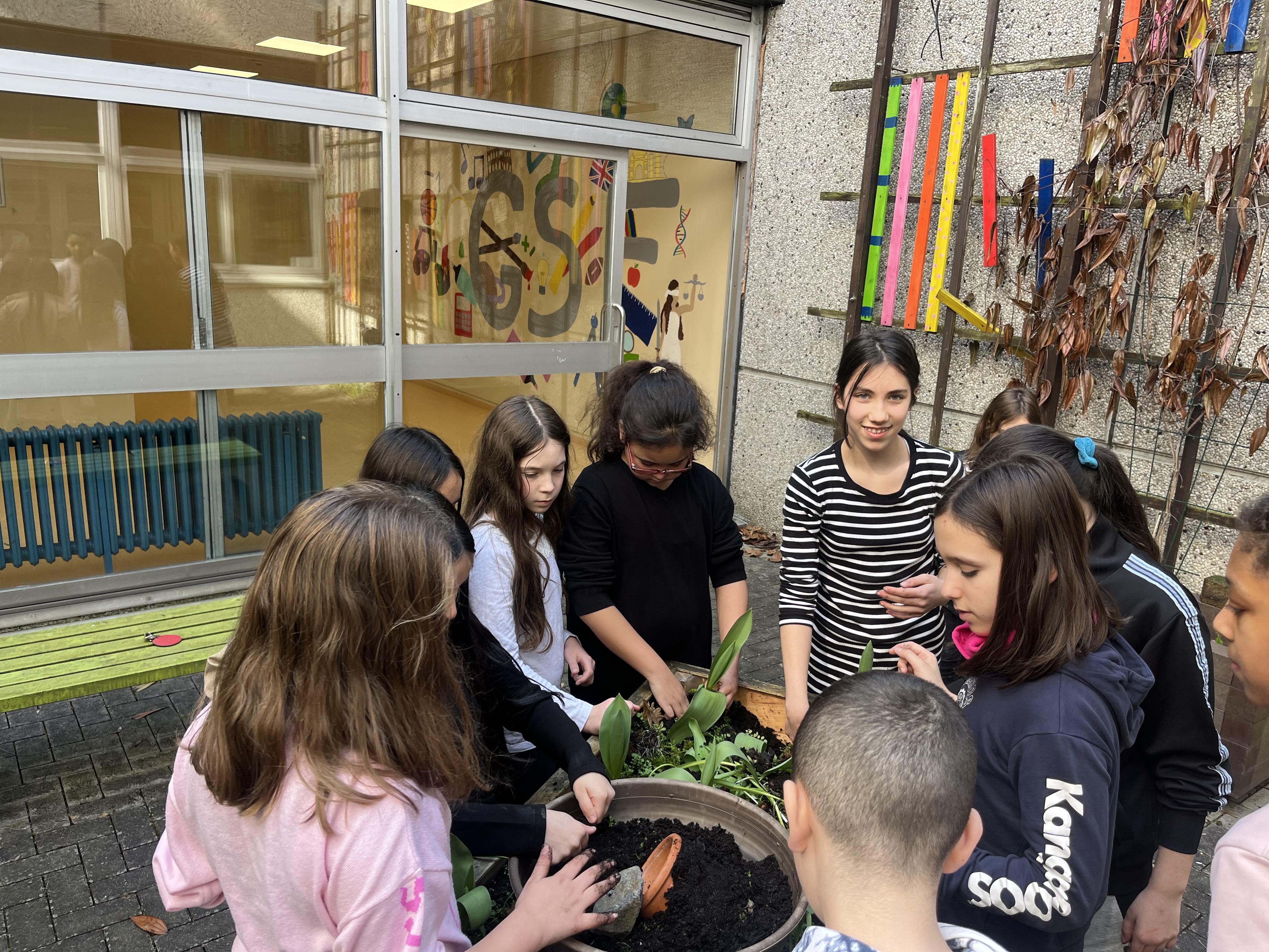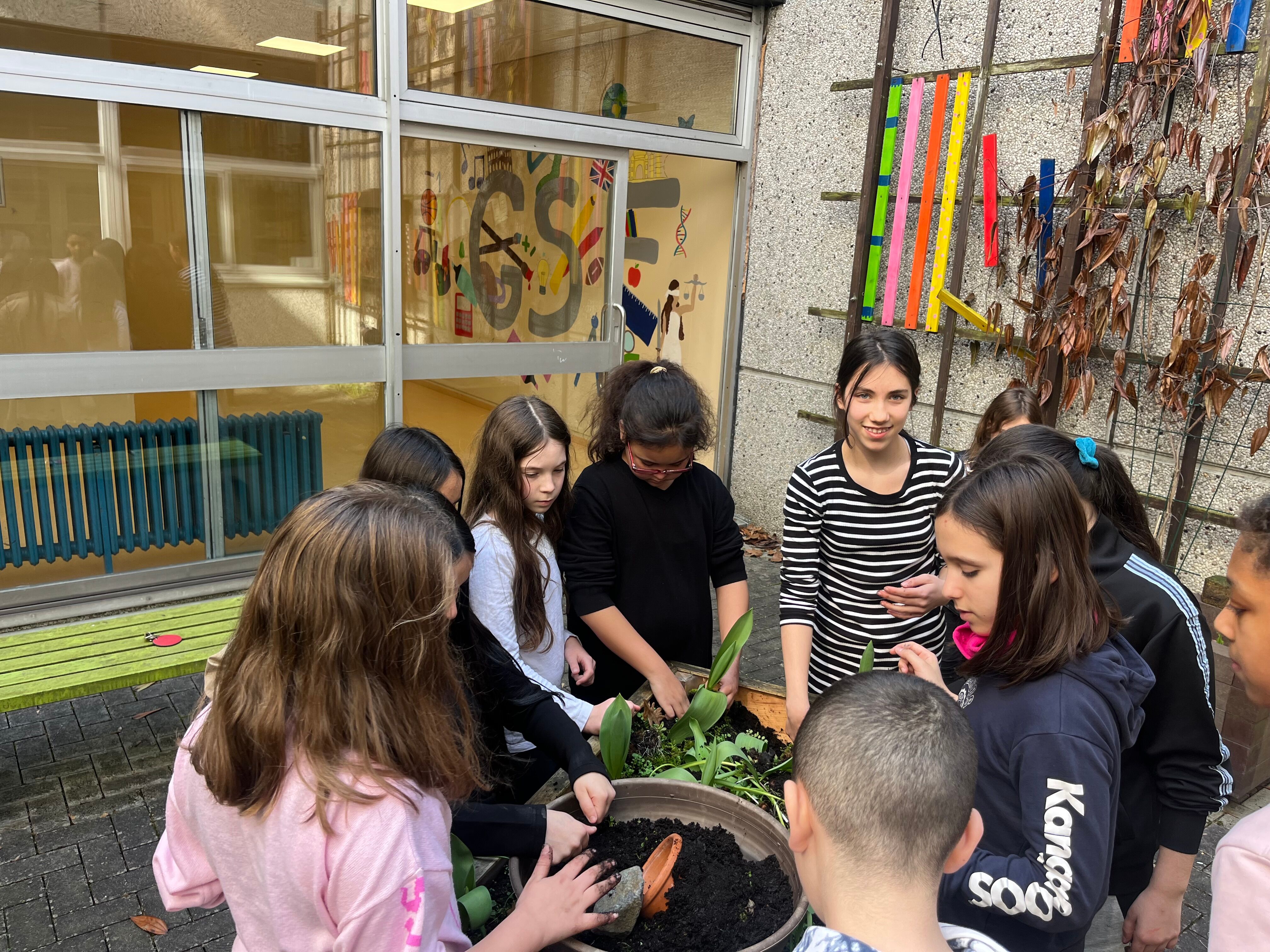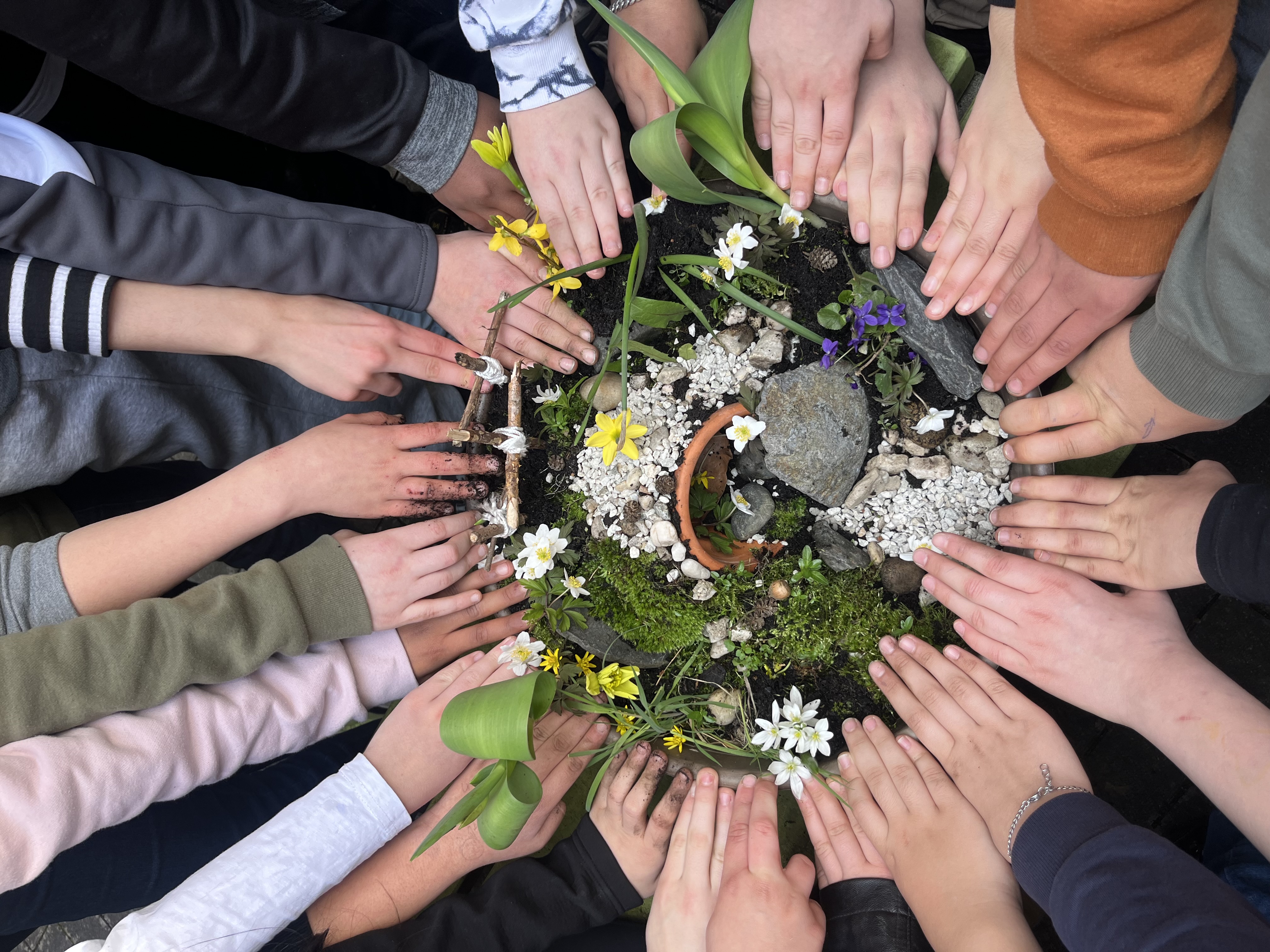 Zu Beginn informierte sich die Klasse über die Hintergründe dieser Tradition und lernte, welche Bedeutung ein Easter Garden in England haben kann. Anschließend wurde das Projekt ganz praktisch: Die Klasse sammelte auf dem Schulgelände passende Naturmaterialien und entwickelte daraus gemeinsam ihren eigenen Ostergarten.