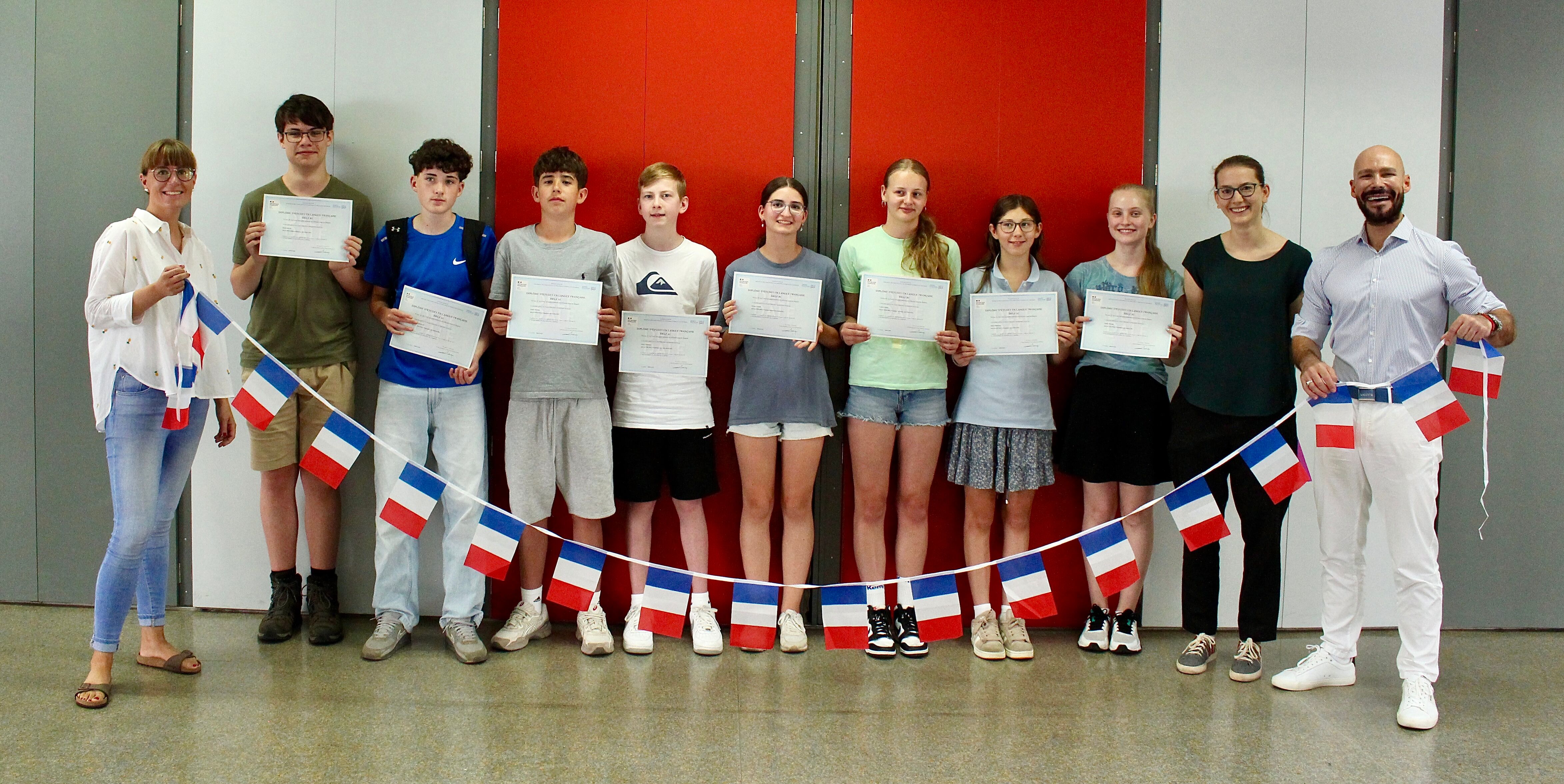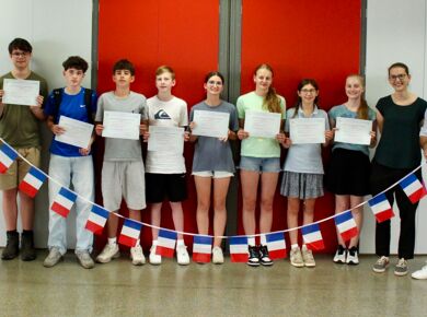 Am 30. Januar haben sich 15 Schülerinnen und Schüler der GSF zusammen mit Frau Leister und Frau Michel auf den Weg nach Mainz gemacht, um dort im Institut français die mündliche DELF-Prüfung zu absolvieren. Der schriftliche Prüfungsteil fand bereits zuvor an einem Samstag im Januar an der Schule statt. DELF steht für Diplôme d’Etudes en Langue Française, also ein Sprachdiplom, das vom französischen Bildungsministerium verliehen wird und das Niveau der Französischkenntnisse von Nicht-Muttersprachlern bescheinigt.