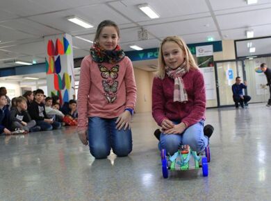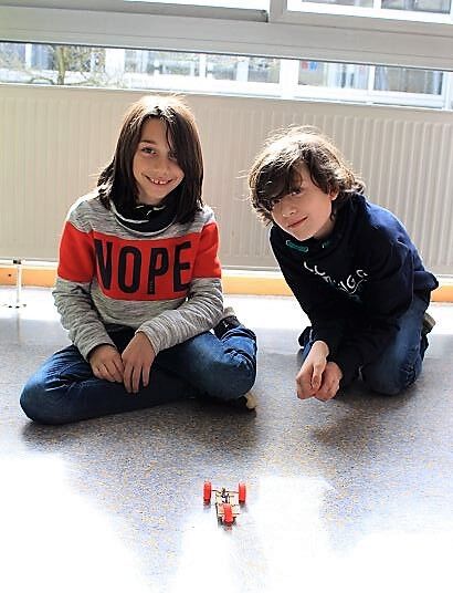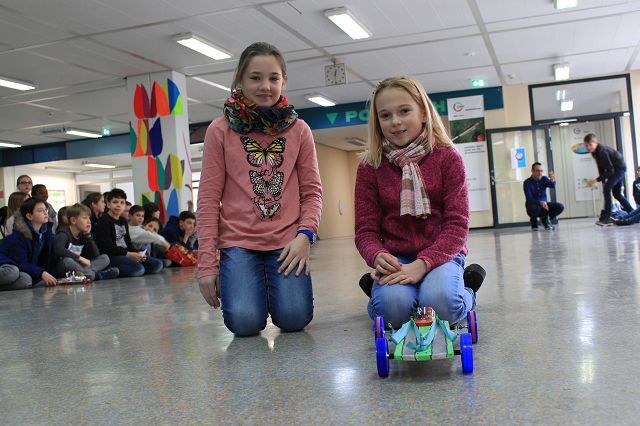 Zwei Schülerinnen einer 5. Klasse gewannen den Wettkampf, weil ihr Auto mit Abstand am weitesten fuhr. Zwei weitere Mädchen belegten den ersten Platz in der Rubrik 'kreativstes Auto', weil sie einen Turnschuh als Fahrzeugkarosse benutzten. Eine Jury bestehend aus allen am Wettbewerb teilnehmenden Kindern, aus Schülerinnen und Schülern der Klasse H5 und aus Kindern, die zufällig frei hatten und sich den Wettbewerb ansahen, ermittelte das kreativste Auto.