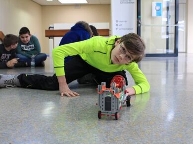 Auch in diesem Jahr wurde interessierten Schülerinnen und Schülern beim schulinternen MINT-Wettbewerb "Denk mit - Mach mit!" wieder eine knifflige Aufgabe gestellt, die mit Fantasie, technischem Geschick und etwas Ausdauer zu lösen war.