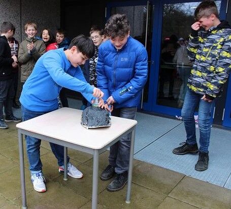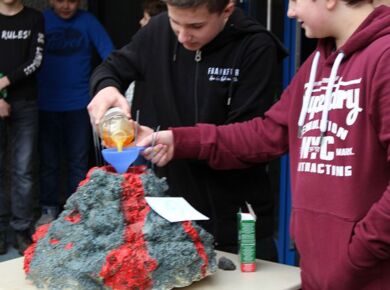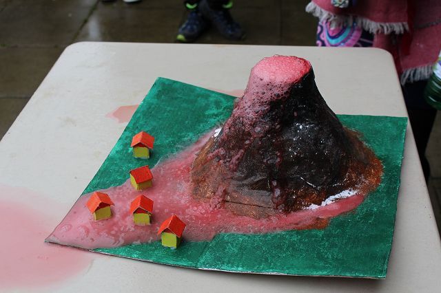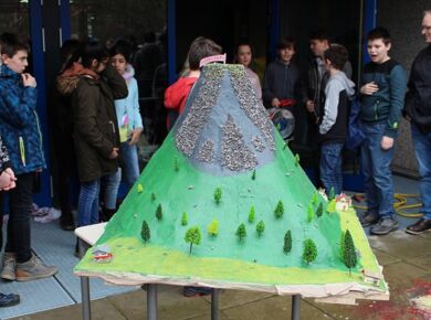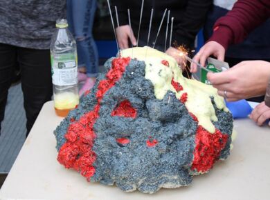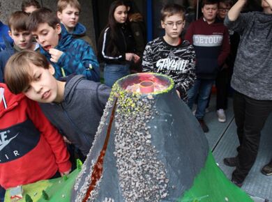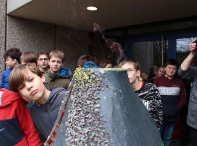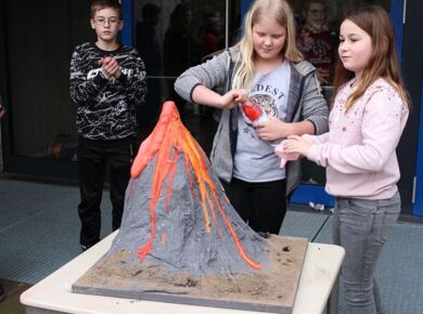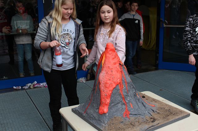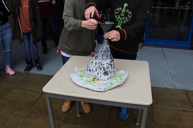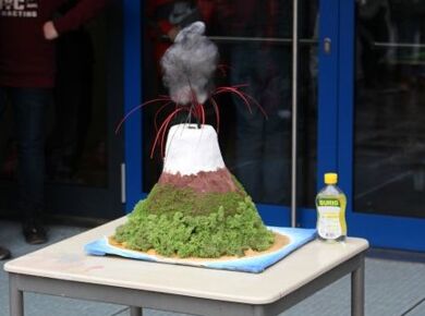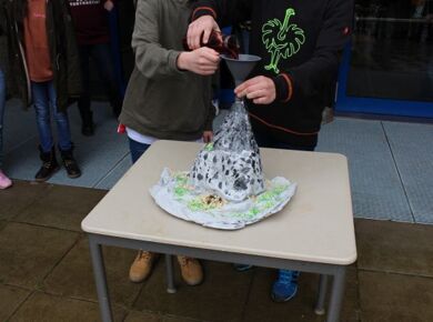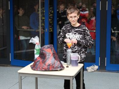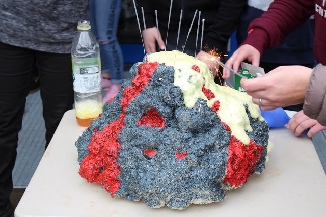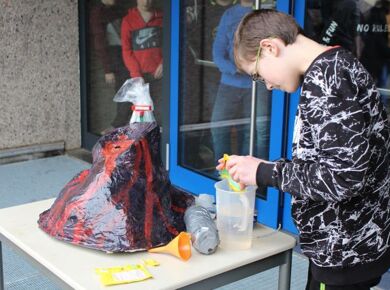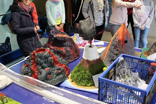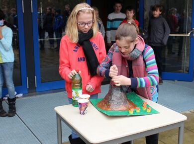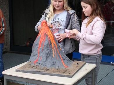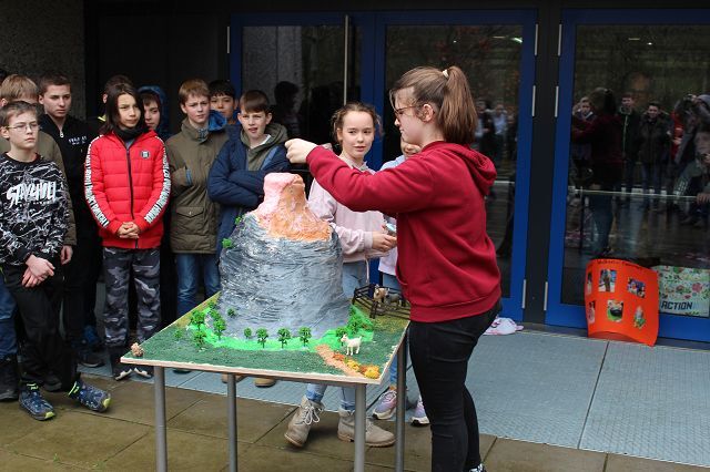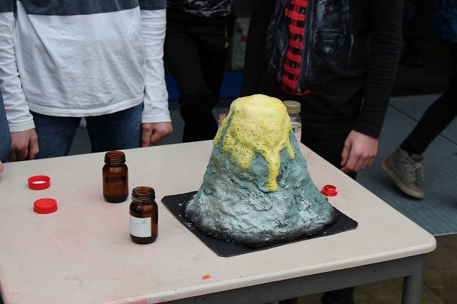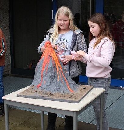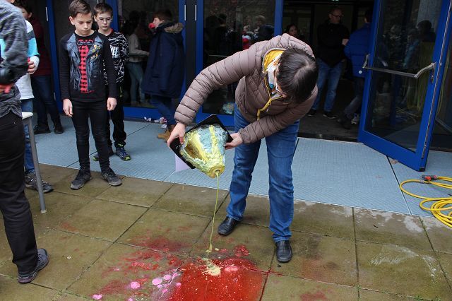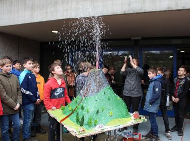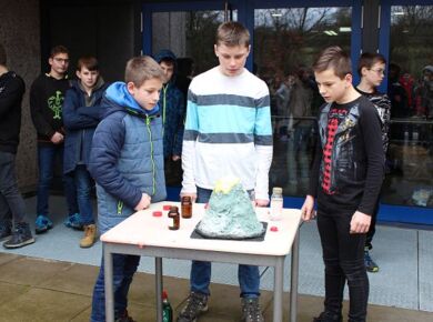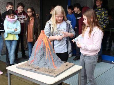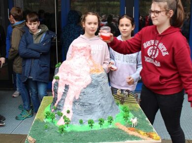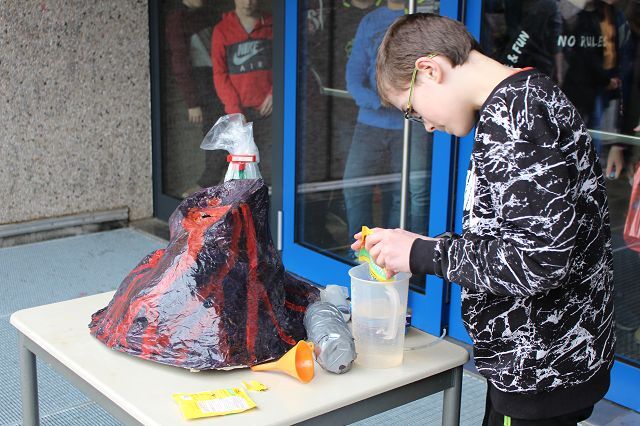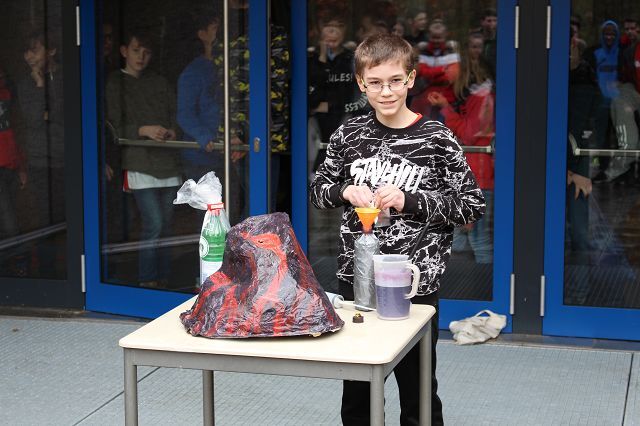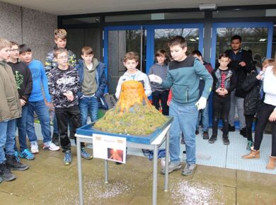 Am 06.03.2020 war es dann soweit! 12 Vulkane brachen nacheinander auf dem Schulhof der GSF aus. Jeder sah anders aus, viele unterschiedliche Methoden zum Ausbrechen der Vulkane wurden angewendet. Es waren wirklich sehr spektakuläre und schöne Aufbauten dabei.
