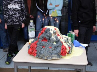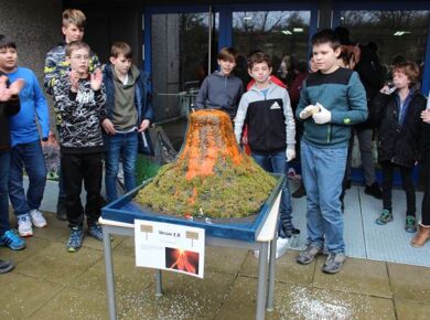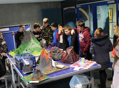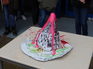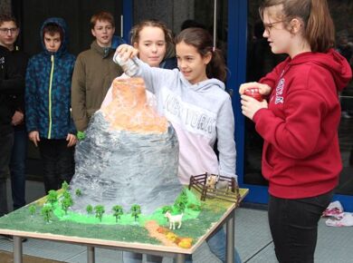 Wie auch in den vergangenen Jahren bekamen die Schülerinnen und Schüler der Gesamtschule Fischbach zum "Denk mit - Mach mit" - Wettbewerb 2020 wieder eine schulinterne MINT-Aufgabe gestellt, die es zu lösen galt. Diesmal sollte ein Vulkan gebaut werden, der anschließend zum Ausbruch gebracht werden musste. Jeder der Lust hatte, konnte ein Exemplar abgeben.