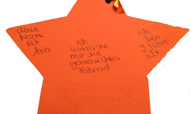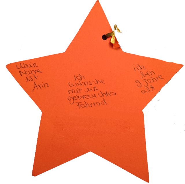 der sich ihren Stern aussucht und den Wunsch erfüllt. Einer fand seinen Weg zu Frau Reichert, Chemielehrerin an der GSF. Die neunjährige Arin hatte ihn geschrieben und wünschte sich ein gebrauchtes Fahrrad.