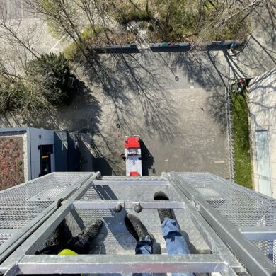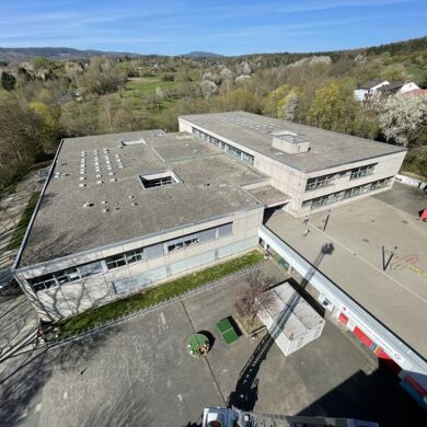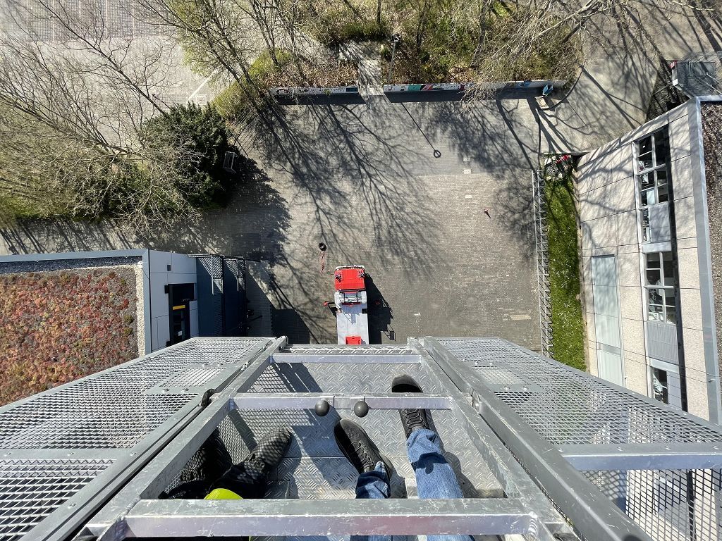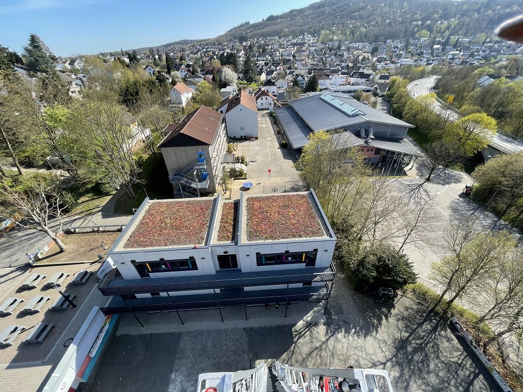 Am 30.04.2021 durfte unser Hausmeister eine Feuerwehrübung nutzen, um sich die Schule und die Gegend von ganz weit oben anzusehen!Viel Spaß beim Ausblick auf die GSF aus schwindelnder Höhe!