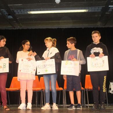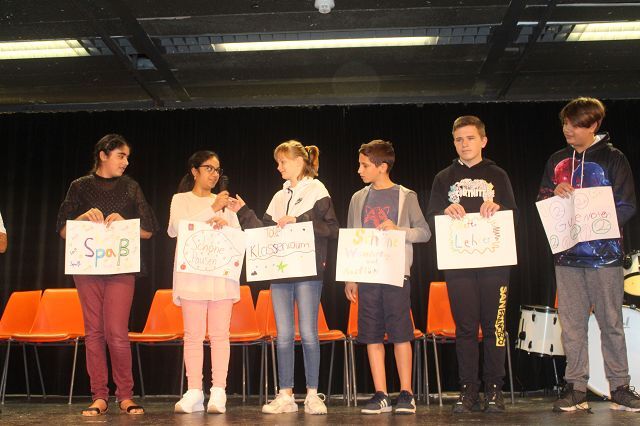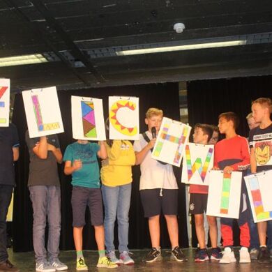 Mit einem bunten, sehr ansprechenden Programm wurden um 08:30 Uhr erst die GymnasialschülerInnen begrüßt und ihren Klassen zugeteilt, um 10:00 Uhr dann alle Real- und HauptschülerInnen. Frau Klos als derzeitige Schulleiterin begrüßte die Kinder mit der Frage: "Seid Ihr aufgeregt? Ich bin es, weil ich neugierig bin, wie Ihr so seid und wie sich unser Weg gestalten wird!" Nach einer kurzen Rede schloss sie mit dem Wunsch: "Bleibt neugierig!" Wir hoffen, dass Ihr alle neugierig seid und bleibt und so ganz viel aus Eurer Zeit an unserer Schule für Euch mitnehmen werdet!