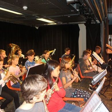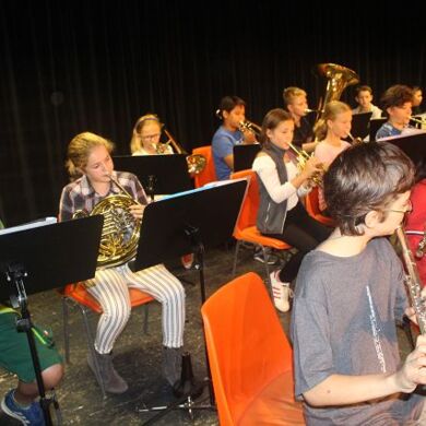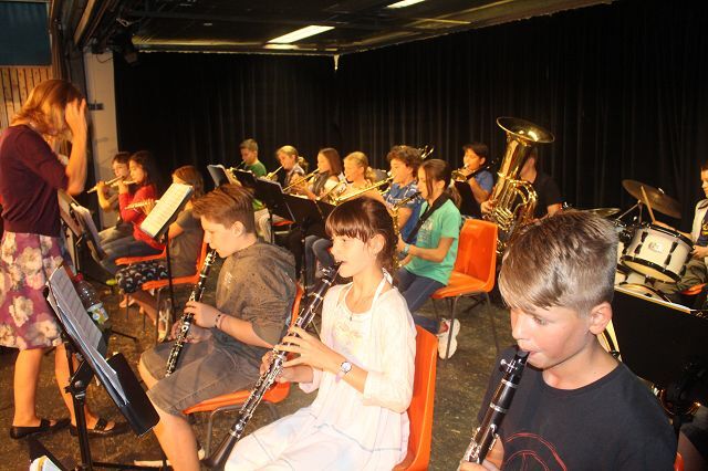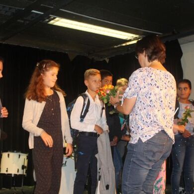 Zwei SchülerInnen der G6 moderierten die beiden Einschulungsfeiern, das Orchester der 6. Klassen spielte und die jetzigen anderen 6. Klassen gestalteten das Programm. Sie begrüßten die neuen SchülerInnen mit Willkommensschildern und mit guten Wünschen, sie führten ein Theaterstück auf und boten eine akrobatische Vorführung als Unterhaltung an.