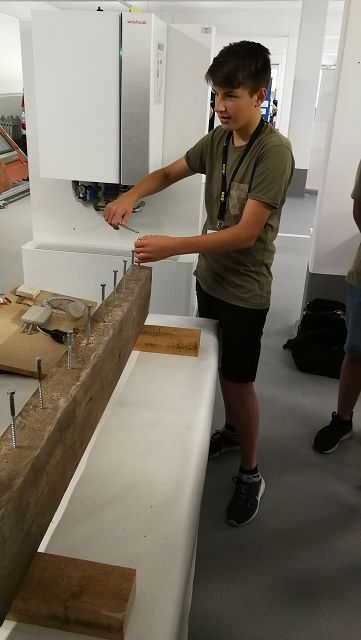 An zahlreichen Stationen konnten die Schülerinnen und Schüler z. B. Fußbodenheizungen mitverlegen, Kupferrohre biegen oder mit Hilfe technischer Geräte einen Raum ausmessen. In der Mittagspause durften sich alle bei einem Basketballspiel sowie heißen Würstchen und Pizza in der Sonne entspannen.