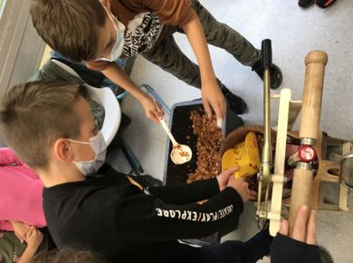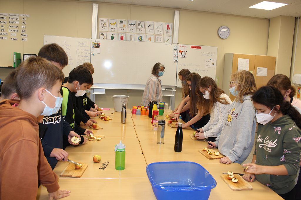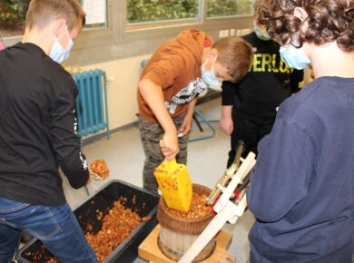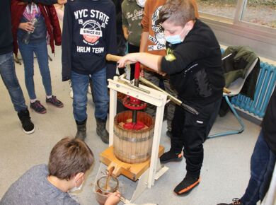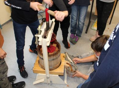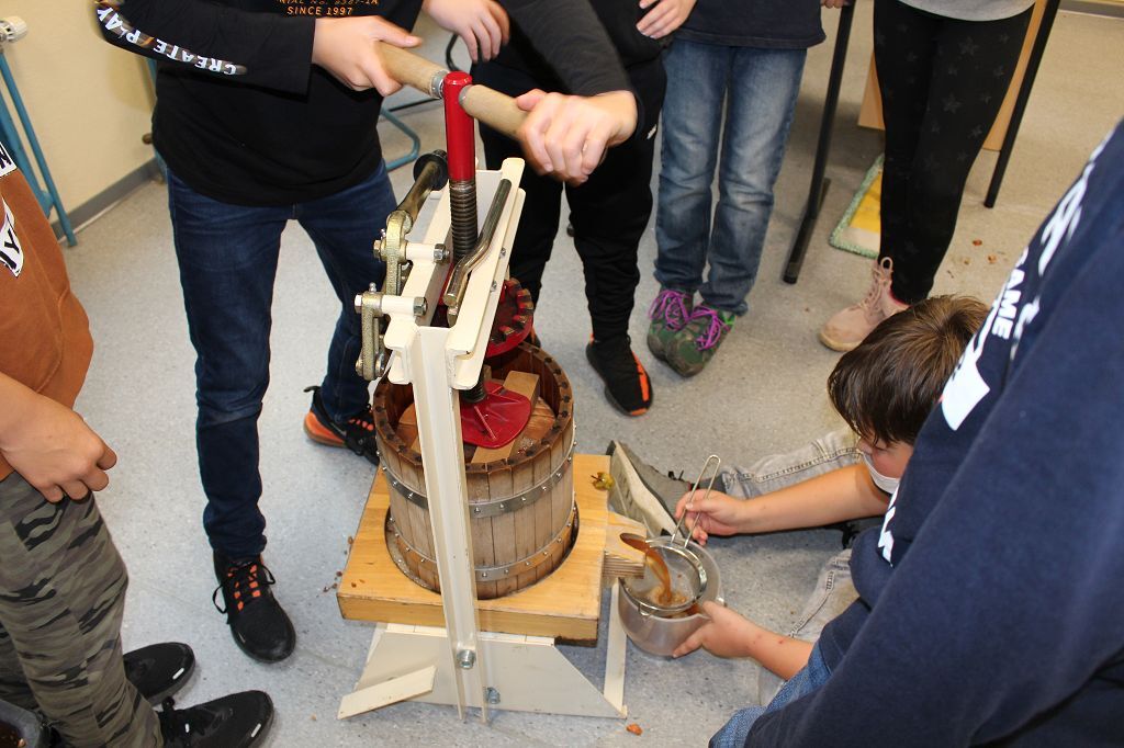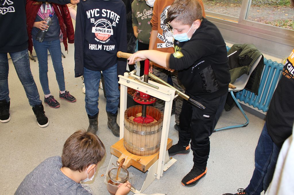 Alle Schülerinnen und Schüler der Jahrgangsstufe 6 konnten in der ersten Oktoberwoche unter Anleitung selbst Äpfel keltern.