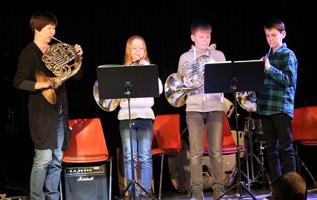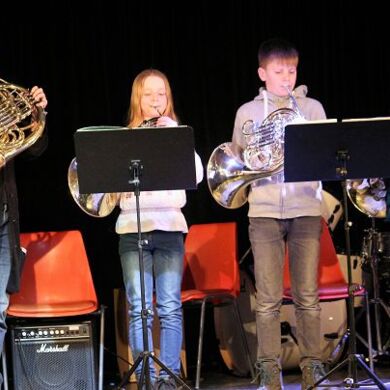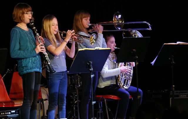Eine unglaublich gut besuchte Aula erwartete die vielen Schülerinnen und Schüler, die teils alleine, teils in kleinen Gruppen auf der Bühne ihr Können auf ihren Instrumenten vorführten. Mit viel Engagement spielten sie ihrem Publikum in gut 1,5 Stunden ein abwechslungsreiches Programm aus klassischen bis neuen Liedern und Musikstücken. Sie wurden dafür mit viel Applaus bedacht.
