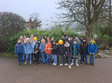 Am 18.03.2024 trotzten die Klassen G5a und G5b dem regnerischen Wetter und besuchten den Opel-Zoo in Kronberg. Zunächst nahmen die Klassen an Führungen zu den Themen „Großtiere“ und „Primaten“ teil und konnten dabei spannende Dinge über die größten Tiere des Zoos und das Verhalten der Affen erfahren, verschiedene Tiere füttern, die spitzen Stacheln des Stachelschweins bewundern und sogar die Giraffen aus der Nähe kennenlernen. Im Anschluss erkundeten die Schülerinnen und Schüler den Zoo mithilfe einer Rallye und erfuhren weitere spannende Informationen über die verschiedenen Tiere des Opel-Zoos. Auch der Streichelzoo war ein beliebter Anlaufpunkt und so manche Ziege musste mit vereinten Kräften wieder eingefangen werden. Die Klassen waren sich am Ende des Vormittags einig: „Es hat sehr viel Spaß gemacht!“