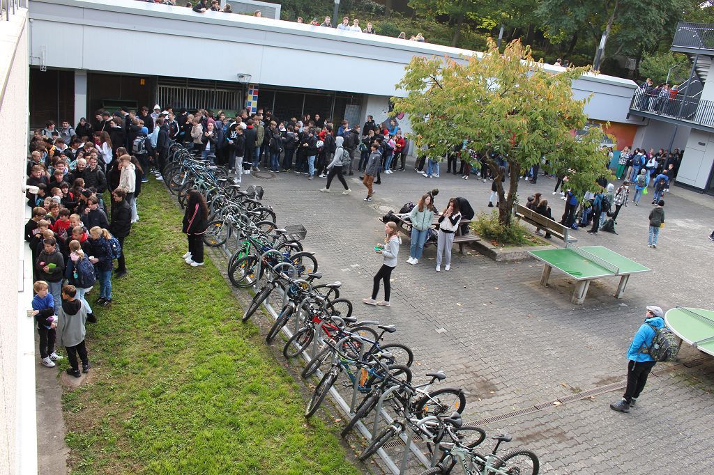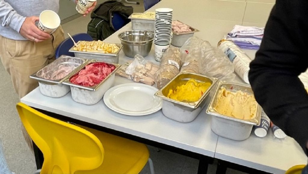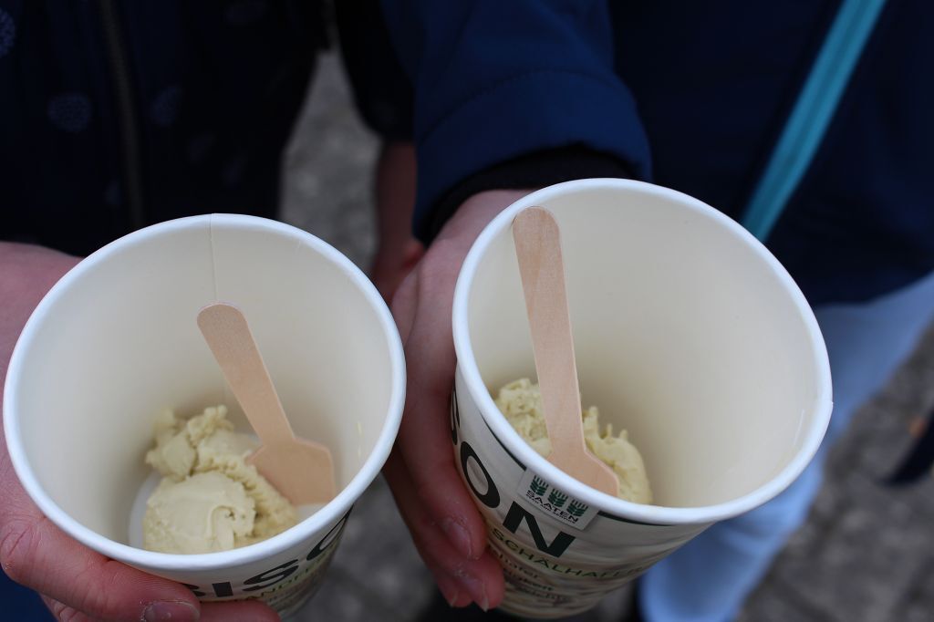 In Eisbechern, die der Förderverein dafür extra erworben hatte, teilten wir heute den Schülerinnen und Schülern jeweils eine Kugel sehr leckeres Eis aus. In einer langen Schlange standen sie dafür in der ersten Pause an und haben es genossen.