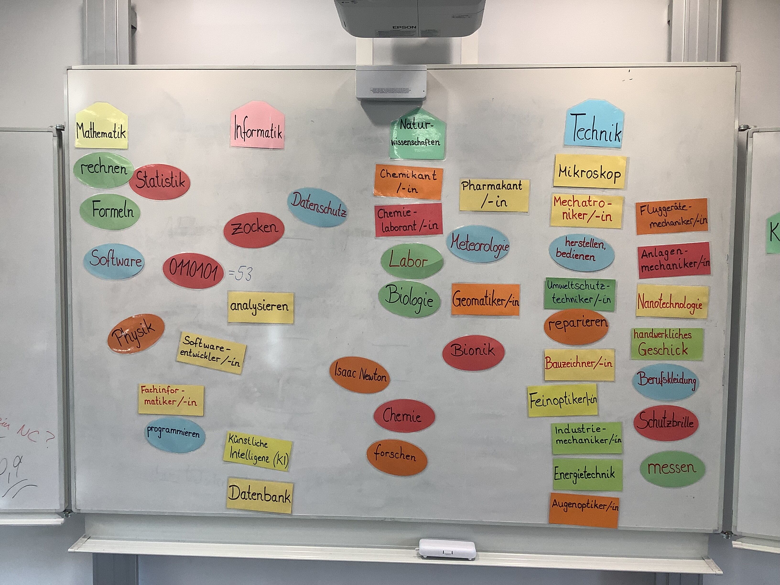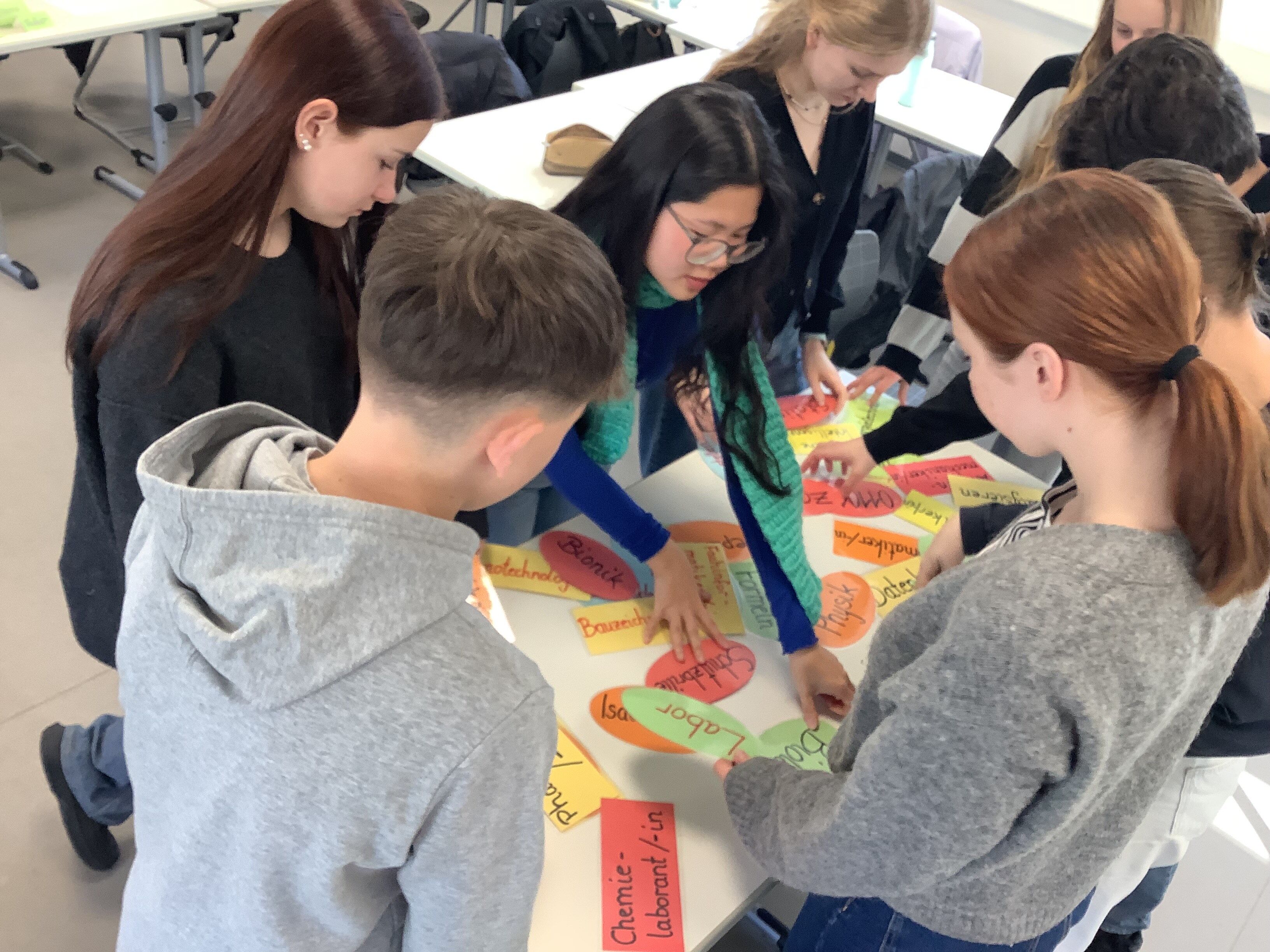 Zunächst nahmen die Schülerinnen und Schüler im März an der Kick-off-Veranstaltung in der Schule teil, die von zwei externen Coaches des Projekts geleitet wurde. Hier erarbeiteten sie MINT-Kompetenzen anhand einer praktischen Aufgabe, lernten anschließend Berufsfelder im MINT-Bereich kennen, beschäftigen sich mit Verdienstmöglichkeiten im MINT-Bereich und bereiteten die Unternehmenserkundungen vor.