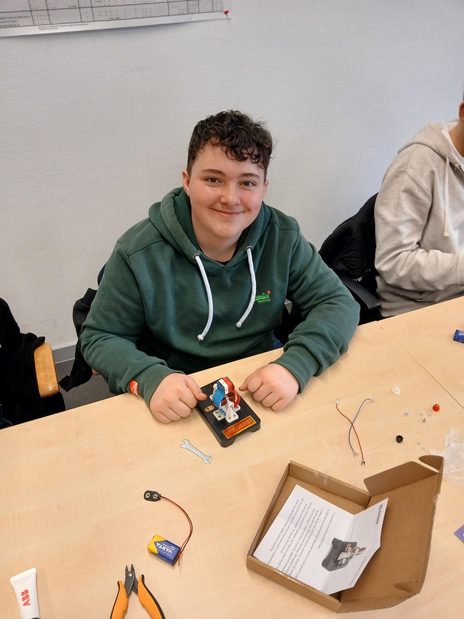 Am vergangenen Mittwoch durften sich die 10 Schülerinnen und Schüler gemeinsam mit Herrn Engel, dem BO-Koordinator der Schule, aufmachen um die Firma ABB am Standort in Frankfurt zu besuchen. Ein globaler Player mit über 105.000 Mitarbeitern auf allen Kontinenten verteilt. Hier konnten die Jugendlichen Einblick erlangen in die Möglichkeiten der Ausbildung und des dualen Studiums bei ABB. Jeder Jugendliche durfte einen eigenen batteriebetriebenen E-Motor bauen.