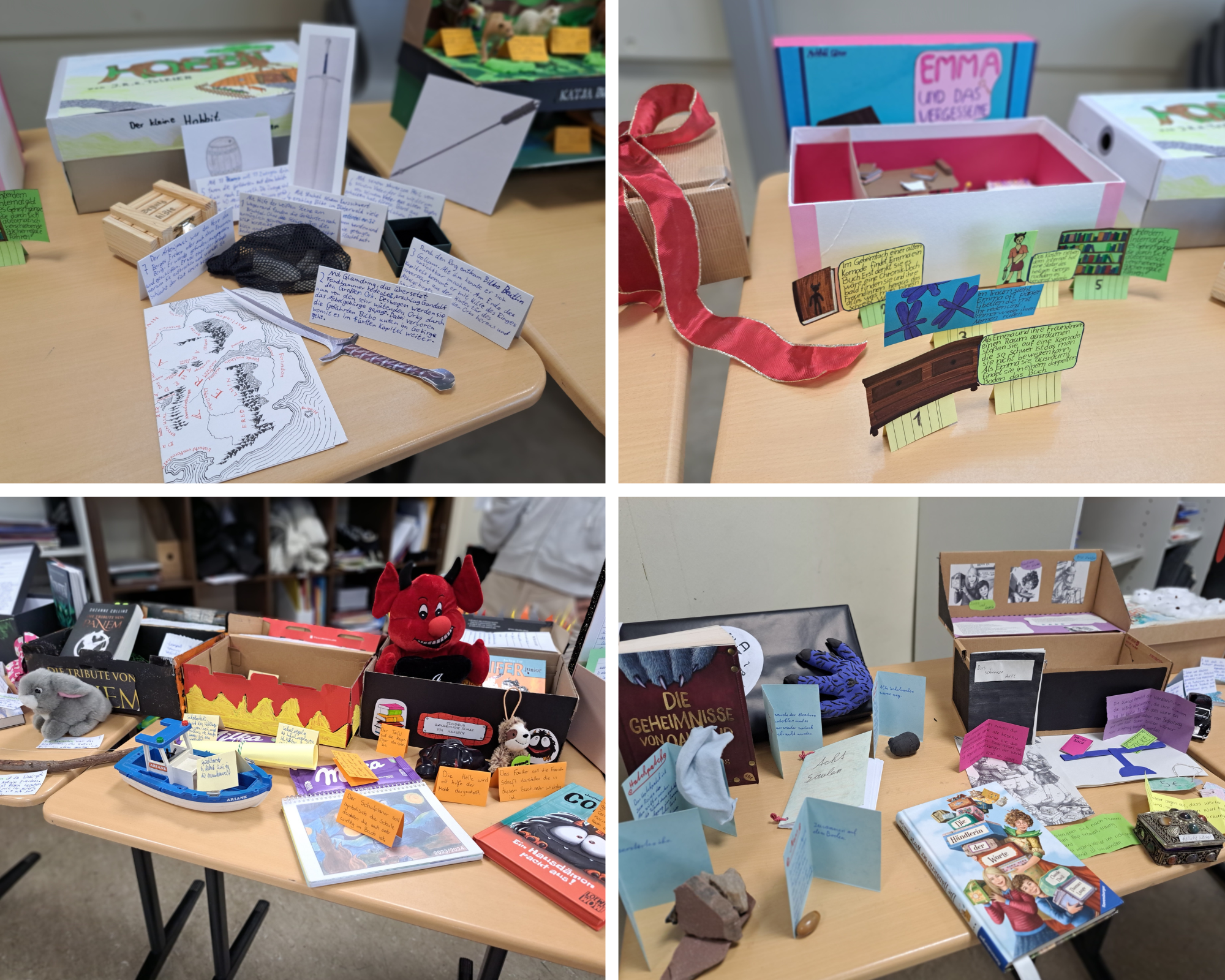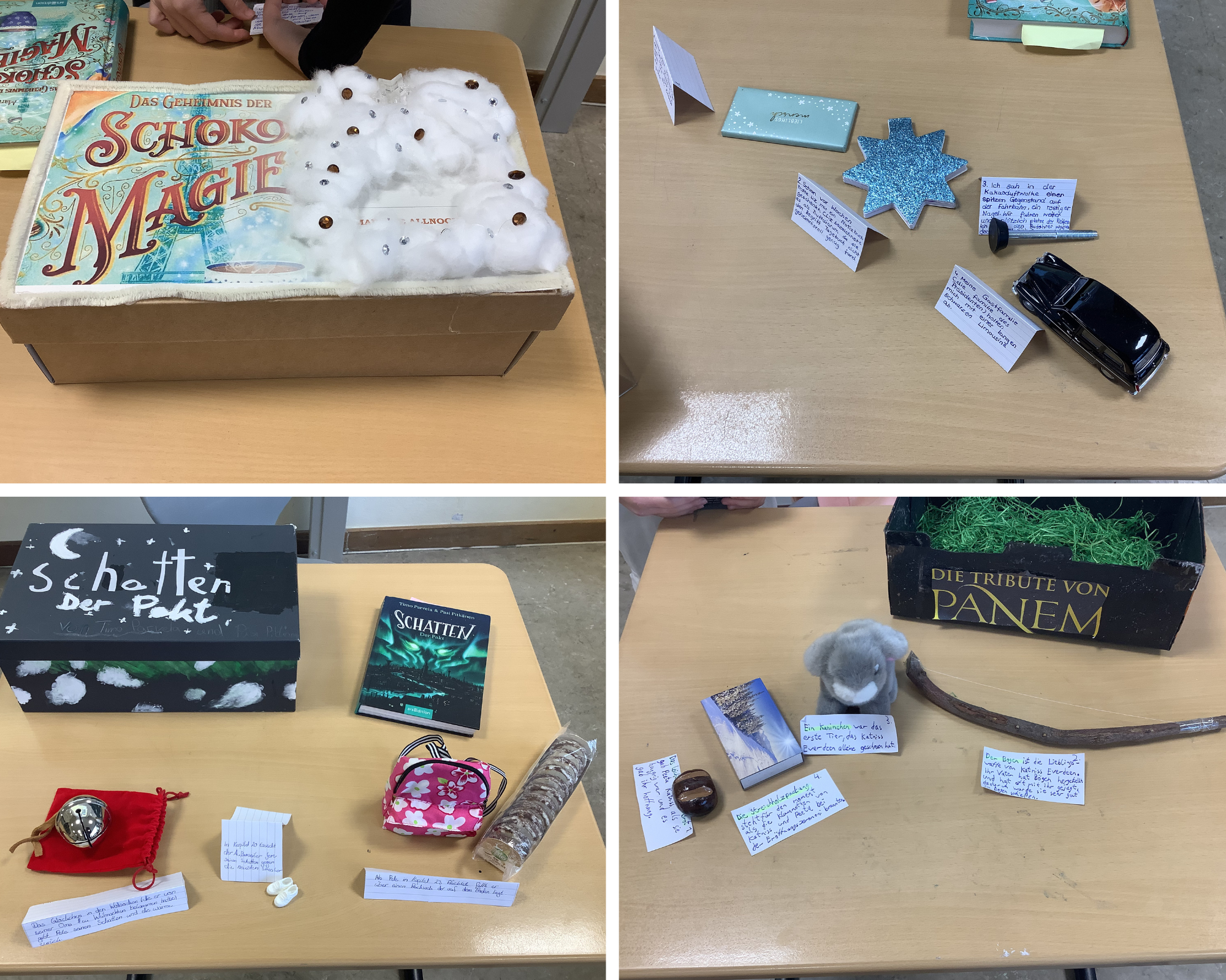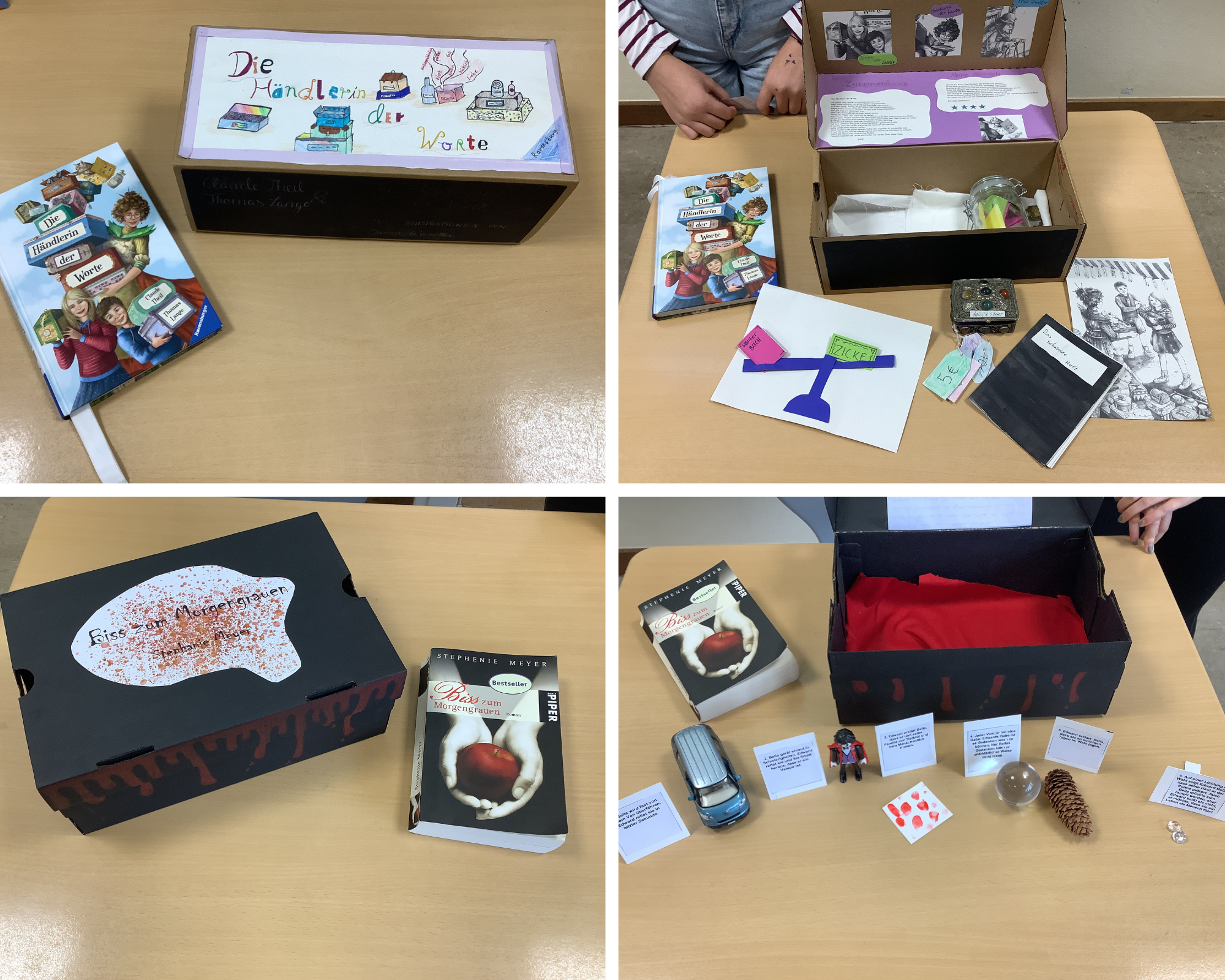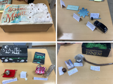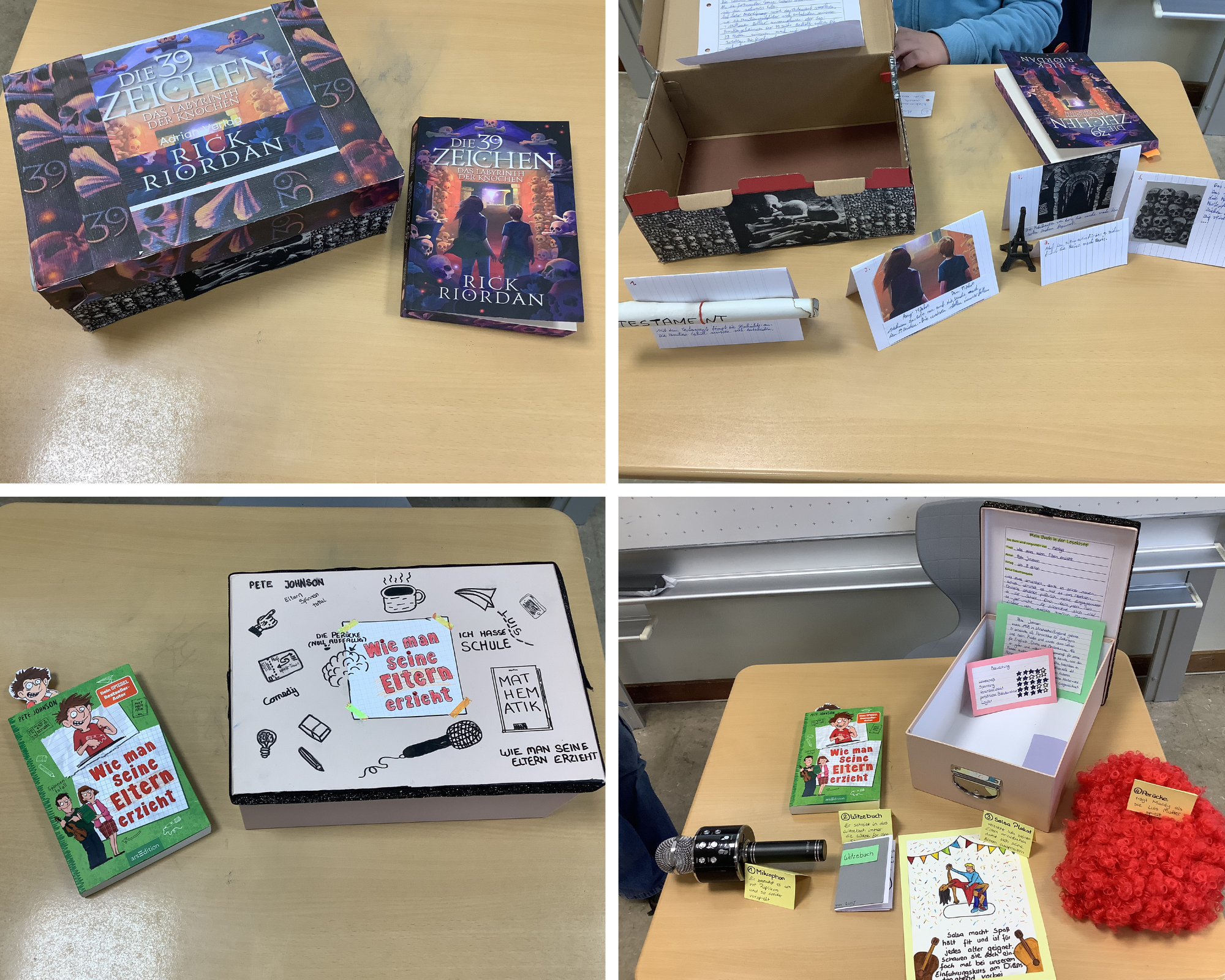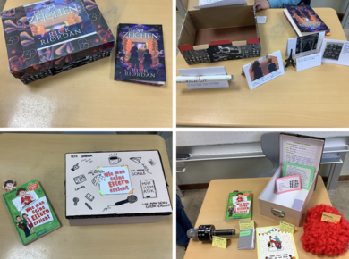 Für die Klasse G6a standen im Rahmen des Deutschunterrichts Buchvorstellungen an. Hierfür haben die Schülerinnen und Schüler zu einem selbstgewählten Jugendbuch eine Lesekiste gestaltet, anhand derer sie dann im Unterricht ihr Buch präsentiert haben.