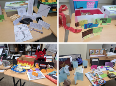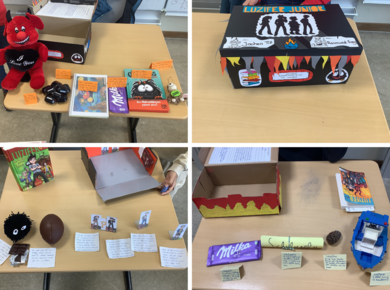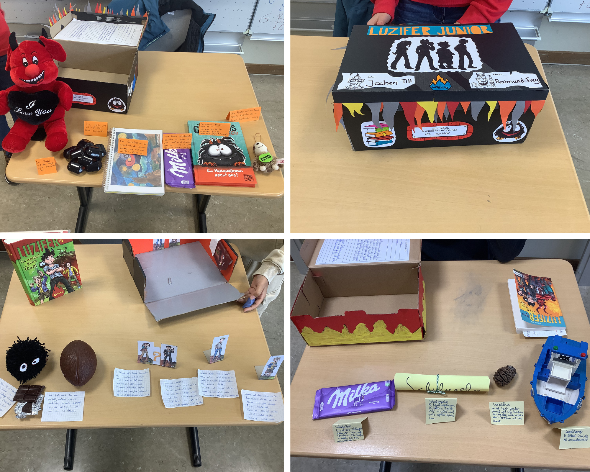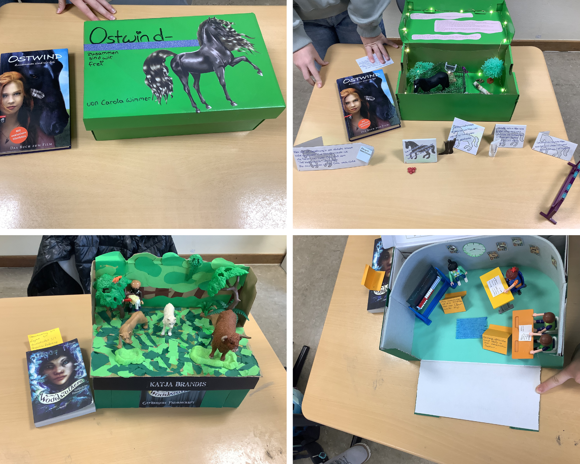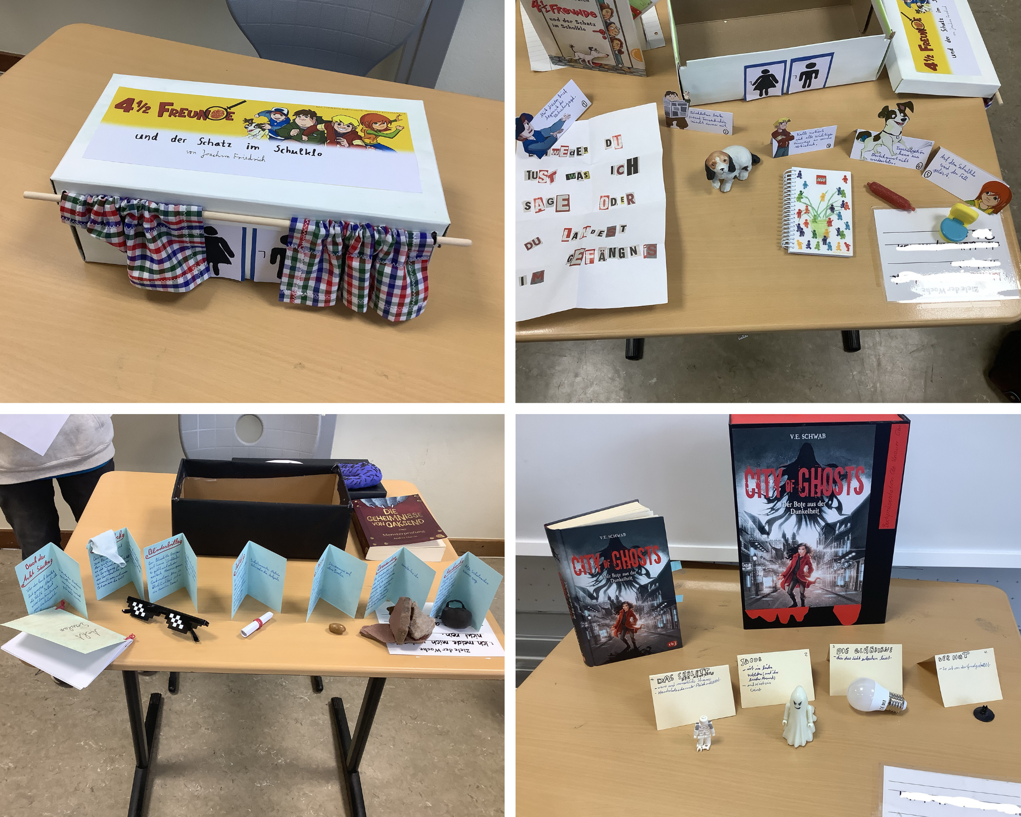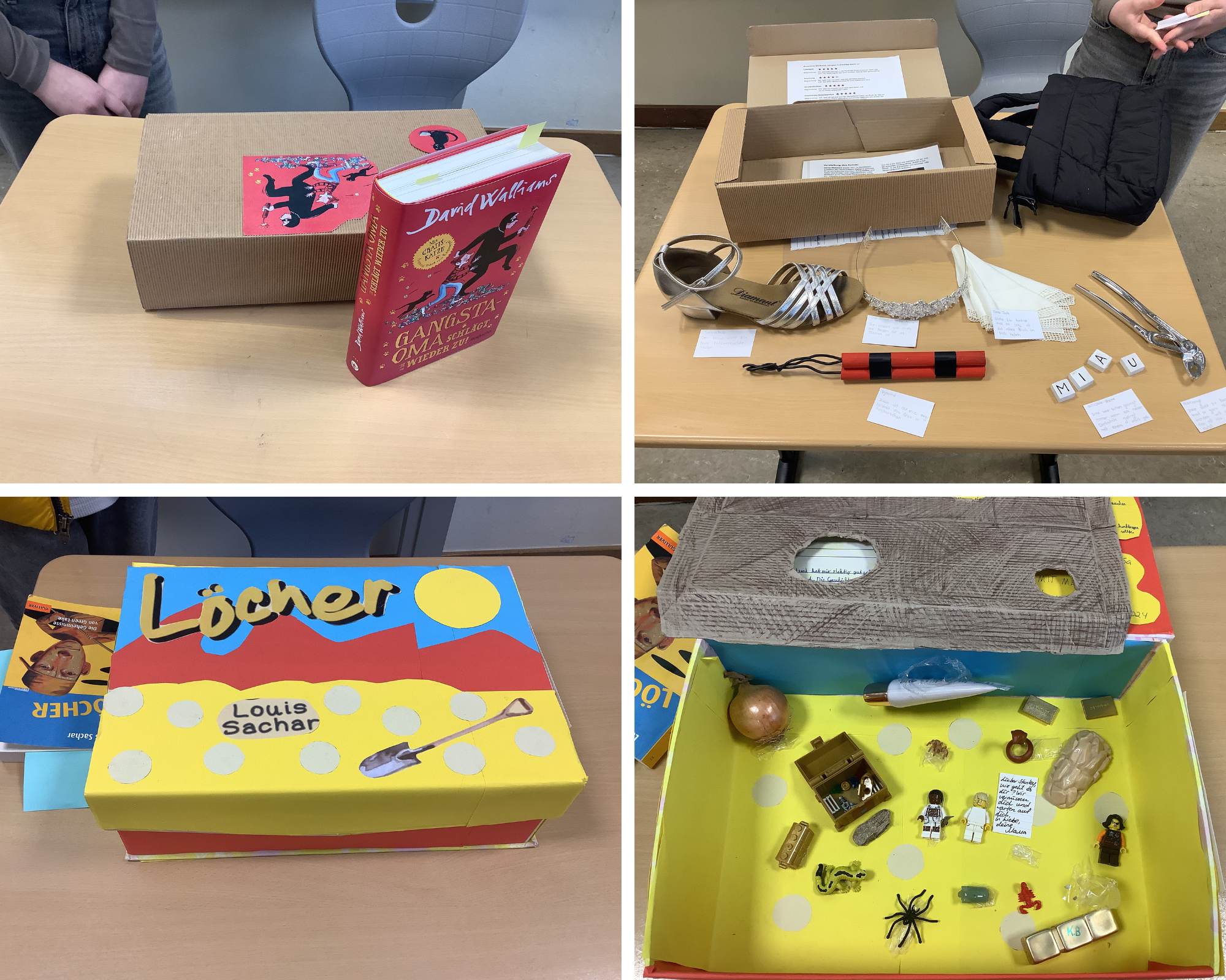 Für die Klasse G6a standen im Rahmen des Deutschunterrichts Buchvorstellungen an. Hierfür haben die Schülerinnen und Schüler zu einem selbstgewählten Jugendbuch eine Lesekiste gestaltet, anhand derer sie dann im Unterricht ihr Buch präsentiert haben.