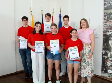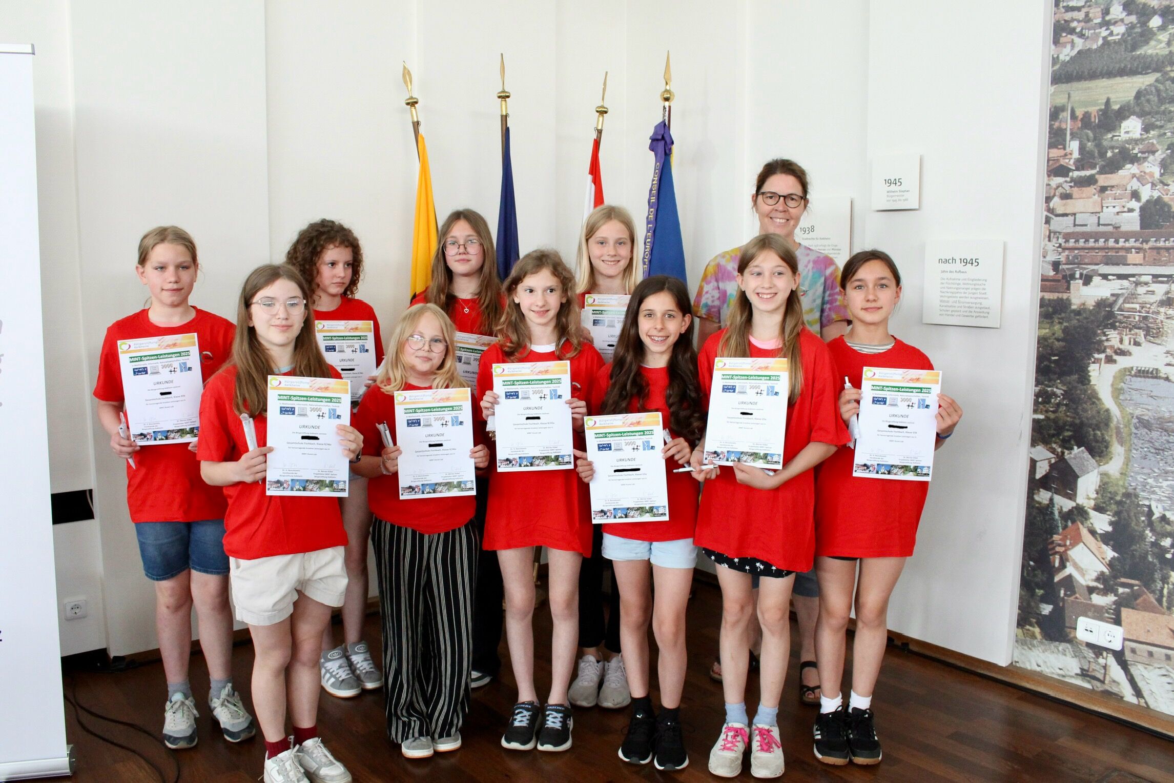 Auch in diesem Jahr zeichnete die Bürgerstiftung der Stadt Kelkheim wieder die MINT-Spitzen der Kelkheimer Schulen für ihre Leistungen aus. Bei der Gesamtschule Fischbach wurden Schülerinnen und Schülern geehrt, die im Mathematikwettbewerb der 8. Klassen für ihren Zweig gewonnen haben, wobei in diesem Jahr auch ein Mädchen dabei war, das sogar an der 3. Runde teilgenommen hat. Es wurden Schülerinnen und Schüler geehrt, die an der Mathematik-Olympiade an der 2. Runde teilgenommen haben, es wurden die kreativen Köpfe der Calliope-AG ausgezeichnet, die neben Schuhputzmaschinen auch 'Mal-Autos', Spiele uvm. auf den kleinen Calliopes programmierten. Die Teilnehmerinnen der MINT-LAP AG wurden dafür ausgezeichnet, dass sie Kunst und Technik miteinander verbinden. Sie programmieren die Stickmaschine, erstellen Vorlagen für Drucke auf Schlüsselanhänger uvm. Das Besondere der AG ist, dass sie nur aus Mädchen besteht. Und die Siegerinnen und Sieger in den Bereichen Technik und Design, die an unserem jährlichen schulinternen MINT-Wettbewerb teilgenommen haben, wurden auch ausgezeichnet. In diesem Jahr sollte eine Kugelbahn gebaut werden, die nur aus Papier und Pappe besteht und Schwierigkeiten wie: Freier Fall, Sprung, Looping, Spirale u.a. auf einer Länge von mindestens 1m aufweist.