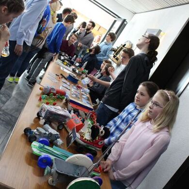 Die Gesamtschule Fischbach ehrte die Arbeitsgemeinschaften RobotX- und 3-D-Druck als jeweils ganze AG für ihre tollen Roboter, die sie bauen und programmieren bzw. für die Programmierung der selbstgedruckten 'Einkaufswagen-Chips', Würfel, Schlüsselanhänger und Figuren. Darüber hinaus wurden die zwei GSF-Teilnehmer an der IJSO, die die 2. bzw. 3. Runde erreicht hatten, ausgezeichnet sowie die Schul- und Zweigsieger des Hess. Mathewettbewerbs und des Känguruwettbewerbs. Auch die Sieger des schulinternen Wettbewerbs 'Denk Mit-Mach Mit!', bei dem in diesem Jahr ein Auto gebaut werden sollte, das nur durch eine Gummibandkonstruktion angetrieben wurde, erhielten die besondere Würdigung ihrer Leistung.