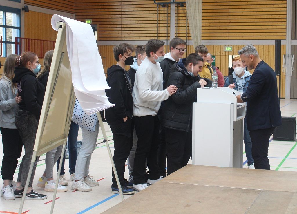 Wie kann ich mich motivieren? Wie kann ich schneller lernen? Wie kann ich meine Noten 'einfach' verbessern? Mit temperamentvollen, einfühlsamen, fesselnden und lustigen Erzählungen konnte er die gesamte Aufmerksamkeit der Schüler/innen an sich binden und sie mit seinen Geschichten zum Lachen oder Weinen, zum Applaudieren und aktiven Mitmachen bringen. Nach einem sehr gelungenen Vormittag gingen unsere Schüler/innen nach Hause und nehmen hoffentlich ganz viel mit.
