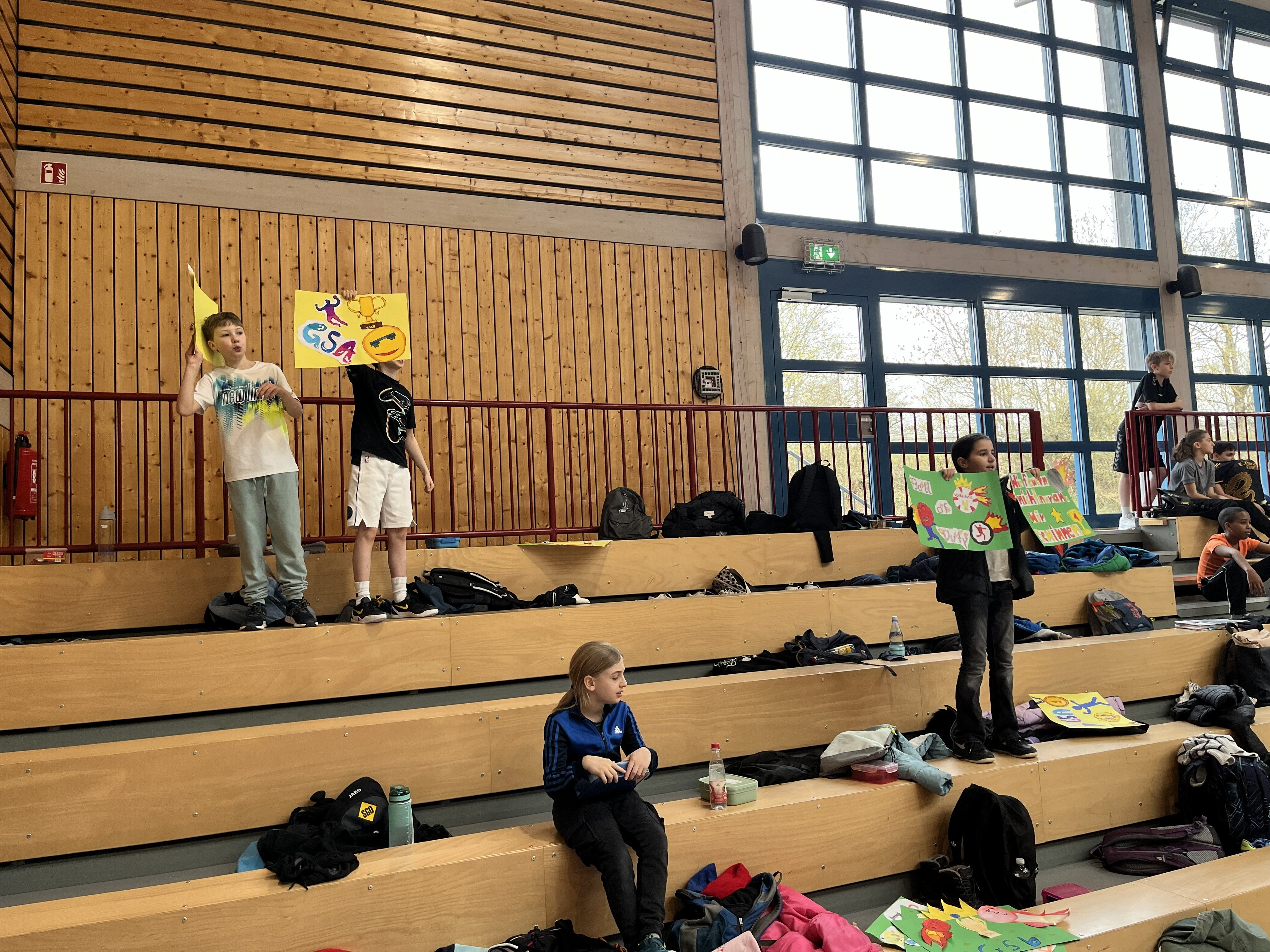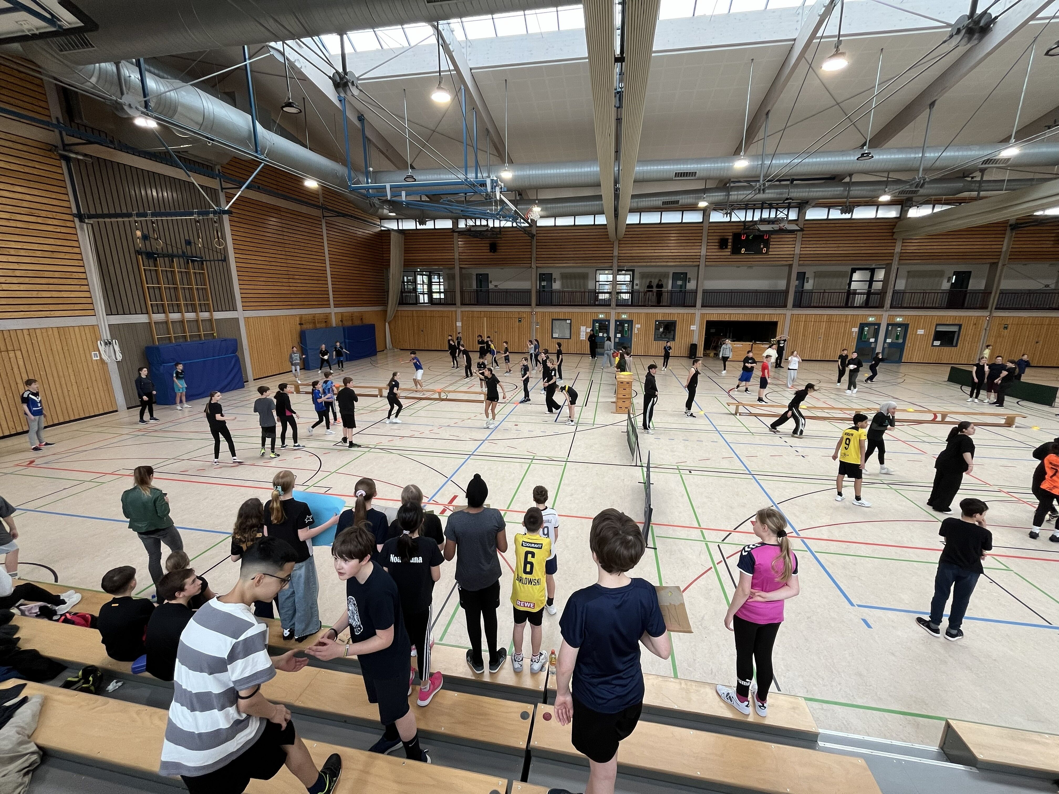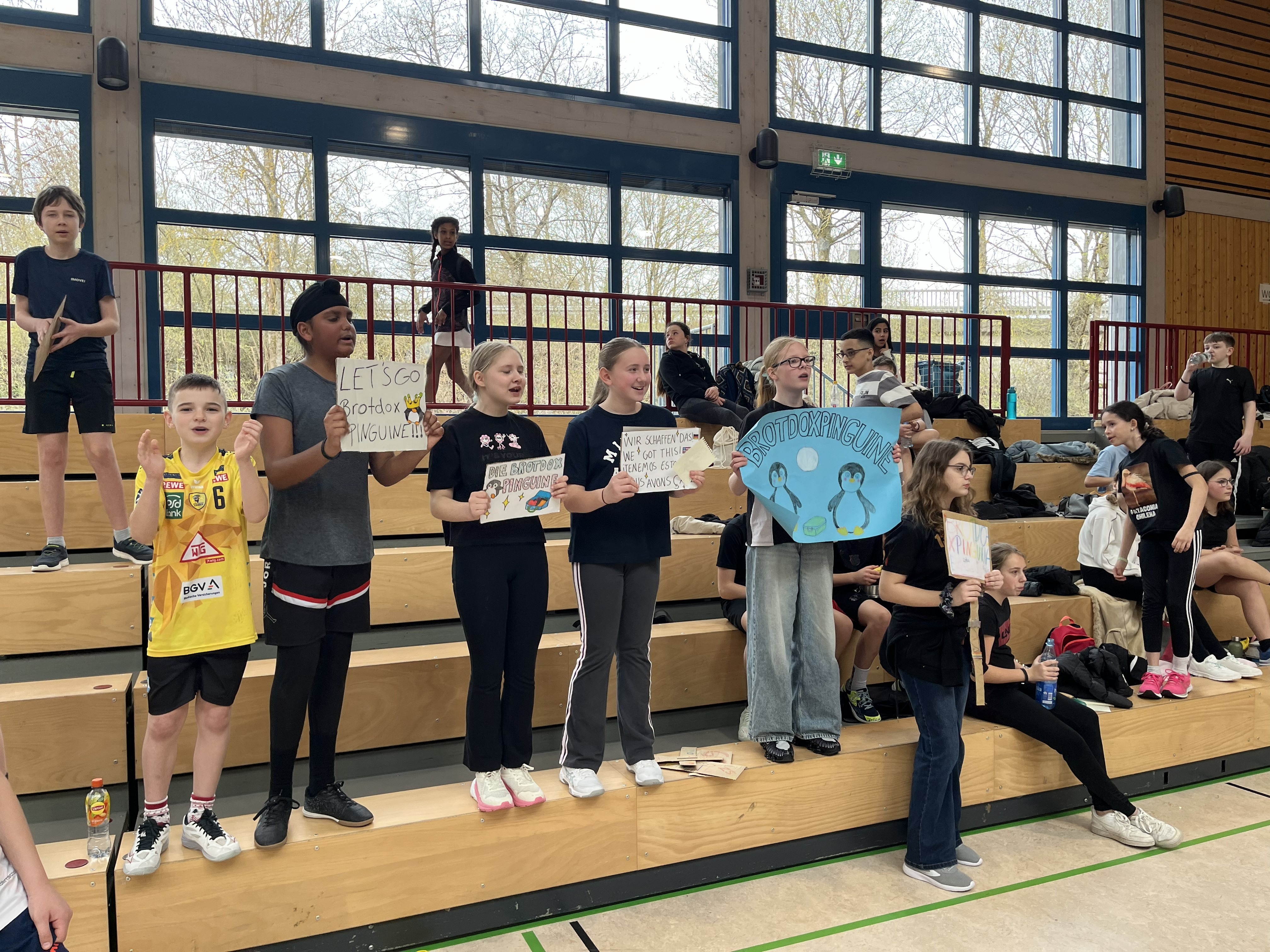 Ein ganz herzliches Dankeschön gilt neben allen teilnehmenden Klassen, vor allem den Klassenlehrerinnen und Klassenlehrern des Jahrgangs 5 und 6, sowie deren Sportlehrkräften, die im Vorfeld nicht nur hart trainierten und den Klassenrat für die Gestaltung toller Plakate nutzten, sondern auch am Wettkampftag die Turnierleitung super unterstützten. Ebenso bedanken wir uns bei unseren Hausmeistern Herrn Alene und Herrn Heusinger für die Unterstützung beim Auf- und Abbau. Ein letzter Dank gilt der Klasse G10c, welche an diesem Tag als Schiedsrichterteams tätig war und erfolgreich für faire Spiele sorgte.