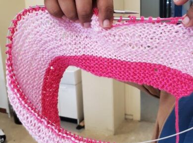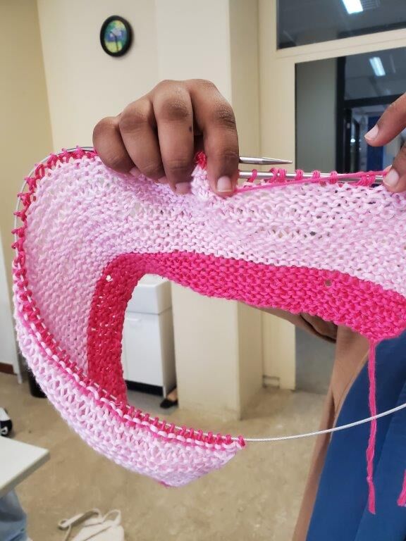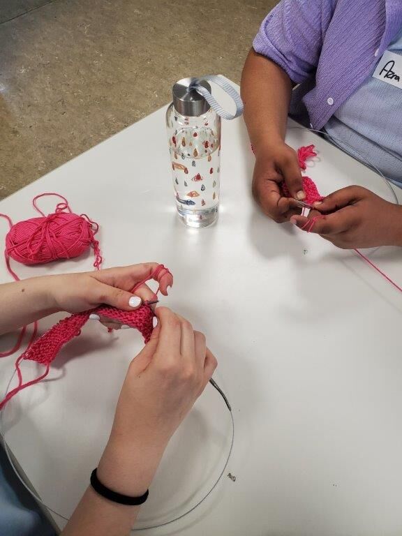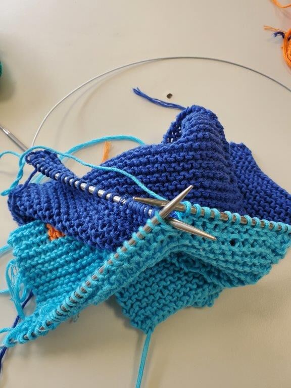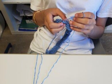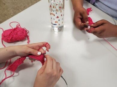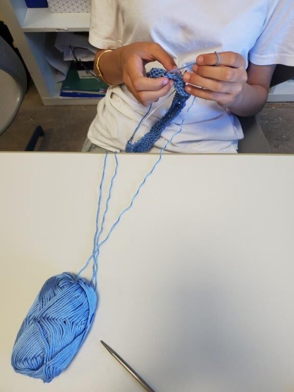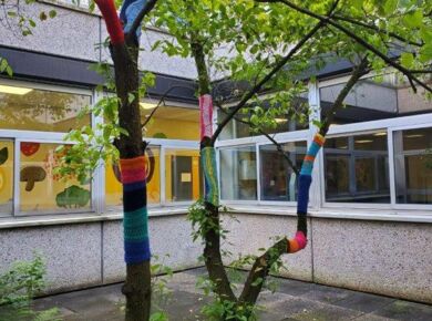 Aller Anfang ist schwer, dachten sich die Teilnehmerinnen aus den Jahrgängen 5-8, als es darum ging, Maschen „anzuschlagen“ und die ersten Reihen zu stricken. Nachdem das zu verschönernde Objekt schnell identifiziert war, widmeten sich die Schülerinnen mit viel Geduld und Ausdauer ihren individuellen und farbenfrohen Strickstücken, die sich wirklich sehen lassen können. Motiviert von der handarbeitend durch die Gänge wandernden Frau Klos besuchten auch zwei Jungen das Projekt und versuchten sich an den Stricknadeln. „Das ist gar nicht so einfach, wie ich dachte“, lautete das Fazit.