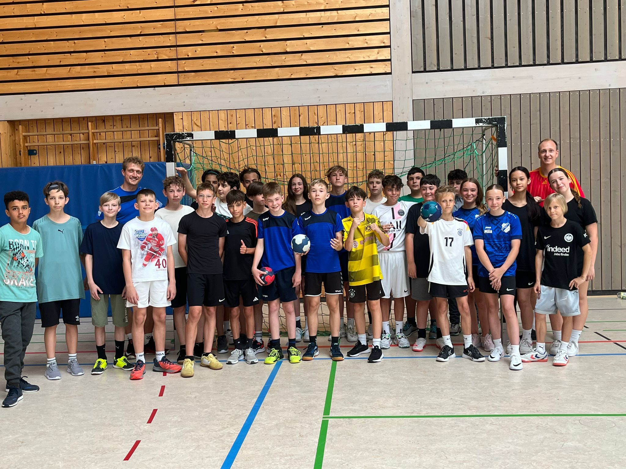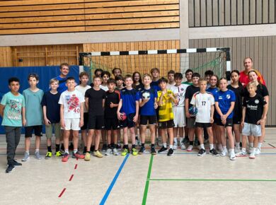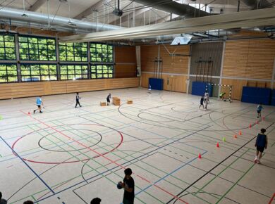 Die Handball-AG der Projektwoche fand bei herausfordernd hohen Temperaturen in der Fischbacher Staufenhalle statt. Rund 30 Sportler und Sportlerinnen aus den 5.-7. Klassen erlernten im Schweiße ihres Angesichts die Basics des Handballspiels. Zwischendurch gab es immer wieder Erfrischungspausen die u. a. auch für 7-Meter-Wettberwerbe genutzt wurden. Am Ende des 3-tägigen Workshops waren erste gute Ansätze im Handballspiel zu erkennen. Herr Schuler und Herr Dreyer bedanken sich bei allen Teilnehmenden für die sportlich, spaßige Zeit und freuen sich auf weitere Projektwochen.