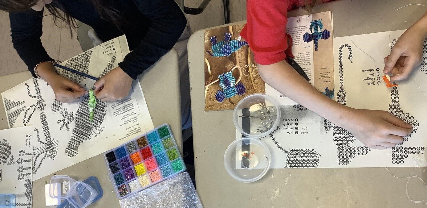 Die Schülerinnen der 5. - 7. Klassen hatten zuerst Respekt vor den kompliziert aussehenden Anleitungen, doch sobald die ersten kniffeligen Perlenreihen geschafft waren, ging es fast von alleine!