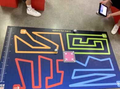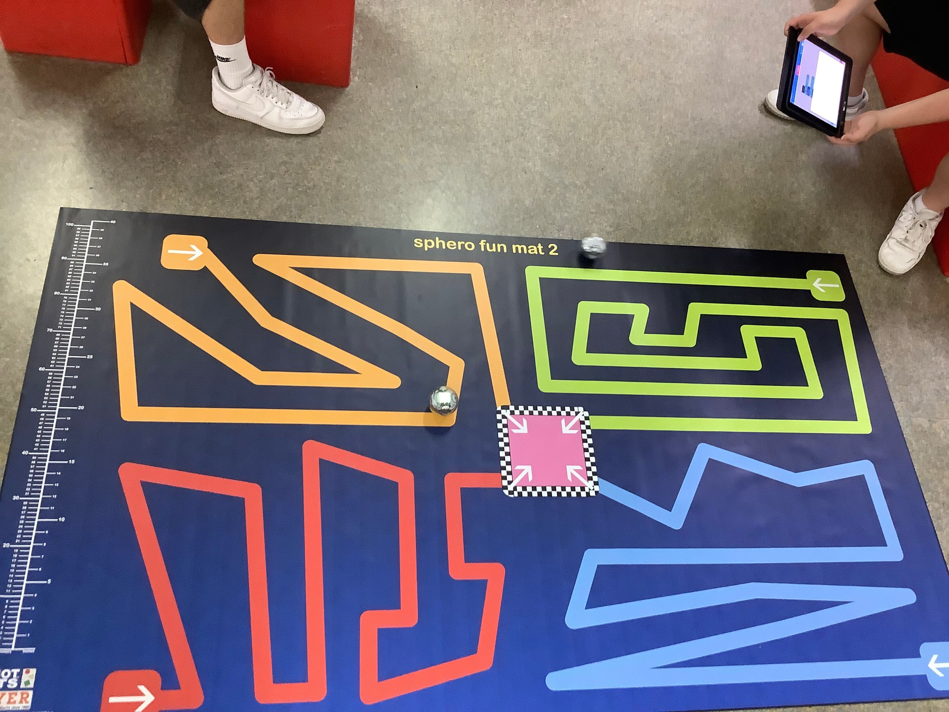 In der Projektwoche lernten Schülerinnen und Schüler aus der 5. bis zur 10. Klasse aller Schulzweige mit einer Blockprogrammiersprache Aufgaben zu lösen und „Roboterkugeln“ zu programmieren. Anfänger und Fortgeschrittene hatten gleichermaßen Spaß und konnten sich nach den Projekttagen oft auch schon „Profi“ nennen. Neben den Sphero Bolt® Kugeln, die auf vorgegebenen Strecken oder auch frei programmiert werden konnten, erstellten die Schülerinnen und Schüler kleine Spiele mit Scratch® bzw. vertieften ihre Kenntnisse in der Textprogrammiersprache Python.