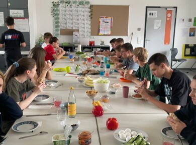 Im Folgenden konnten die vier 4er-Gruppen sich 3 Gänge Menus zu einem Land ihrer Wahl überlegen. Daraufhin wurde eine Einkaufsliste geschrieben und anschließend gemeinsam im fußläufigem Supermarkt eingekauft. Auch hier lernten einige Schüler*innen was es heißt mit Geld hauszuhalten.