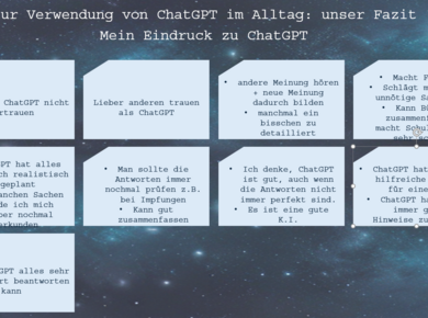 Die Schüler*innen haben sich im Projekt sehr engagiert und jederzeit motiviert gezeigt. So macht eine Projektwoche den nötigen Spaß und nebenbei lernten die Kinder Seiten an sich kennen, die sie möglicherweise nun auch öfter zu Hause zeigen werden.