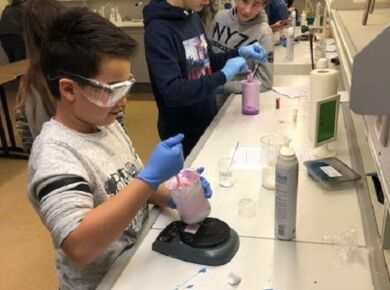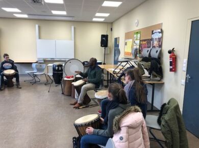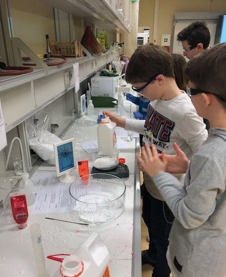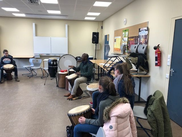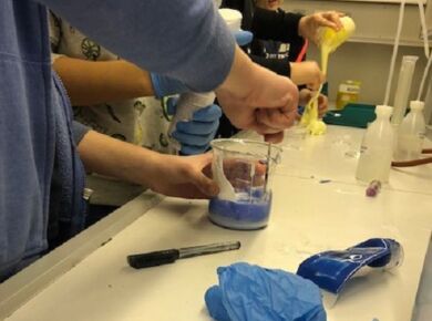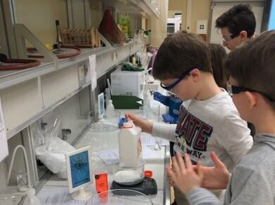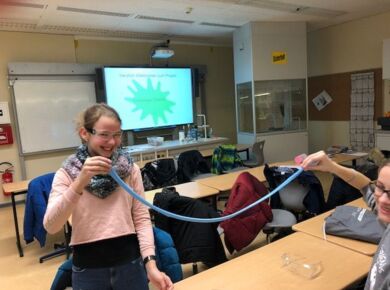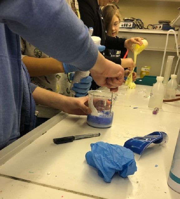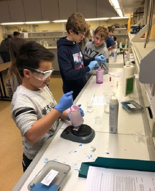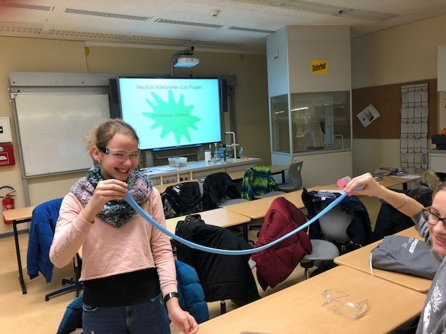 Die Schülerinnen und Schüler nahmen an drei der vier angebotenen Projekte teil. Sie stellten gemeinsam mit Frau Winter unterschiedliche Schleime her und entdeckten, was diese so schleimig macht. Herr Rommel führte seine Gruppen in die russische Sprache ein und brachte ihnen die kyrillischen Buchstaben näher. Bei Frau Siebentritt wurden die Koordination und das Timing beim Jonglieren geübt. Dr. Traoré trommelte mit den Schülerinnen und Schülern auf Djembe und Cajon, sie entwickelten dabei auch eigene Rhythmen.