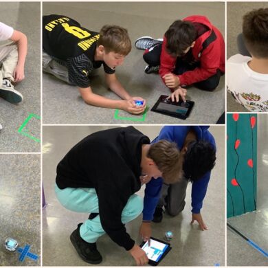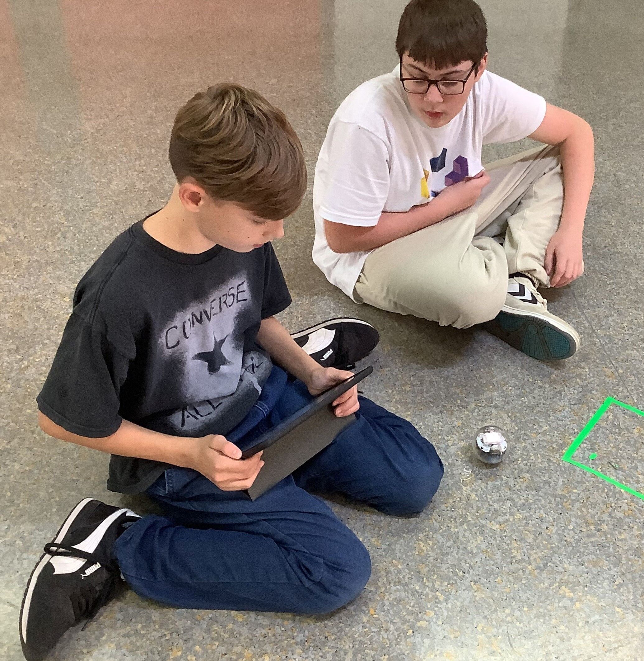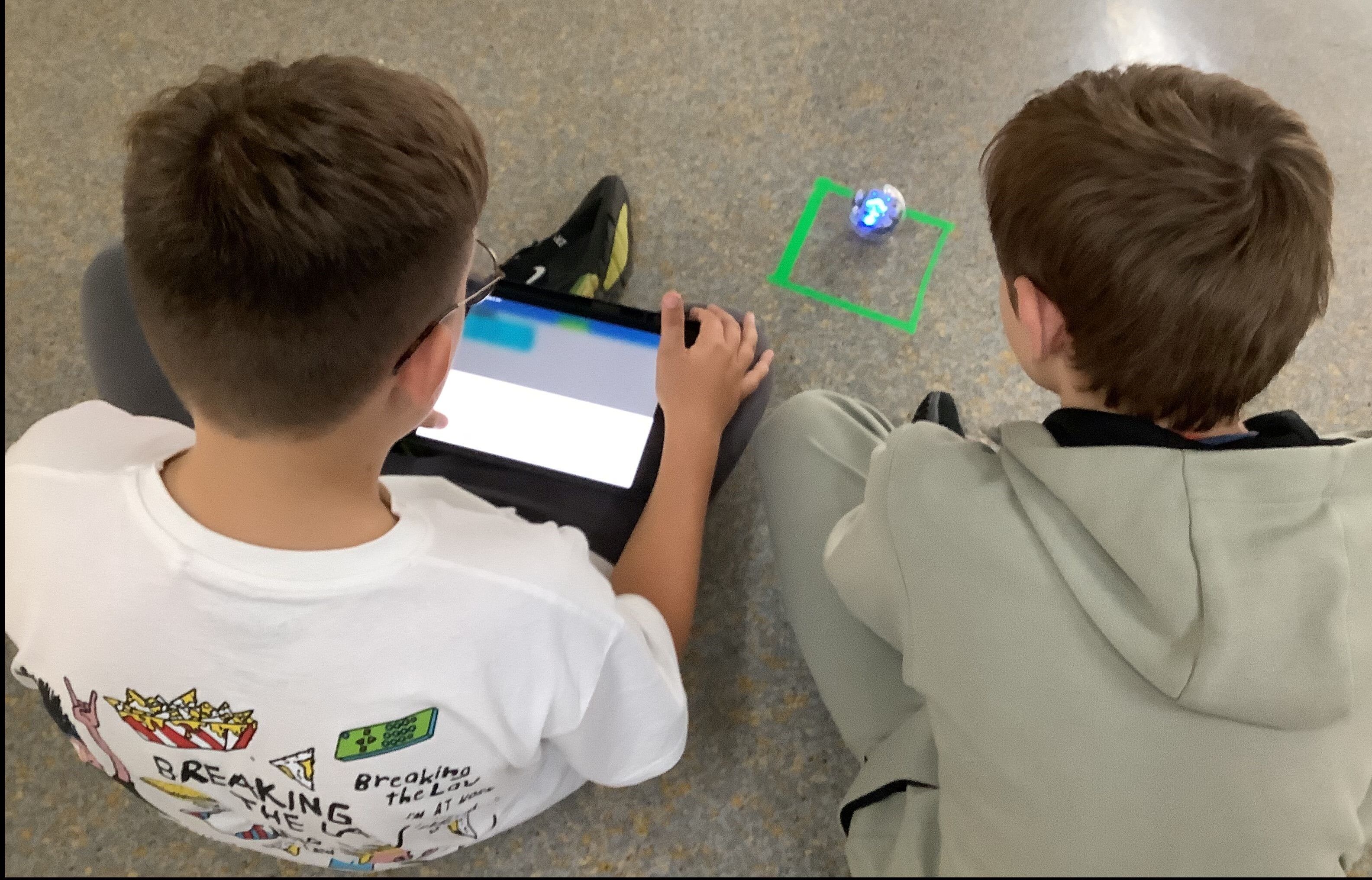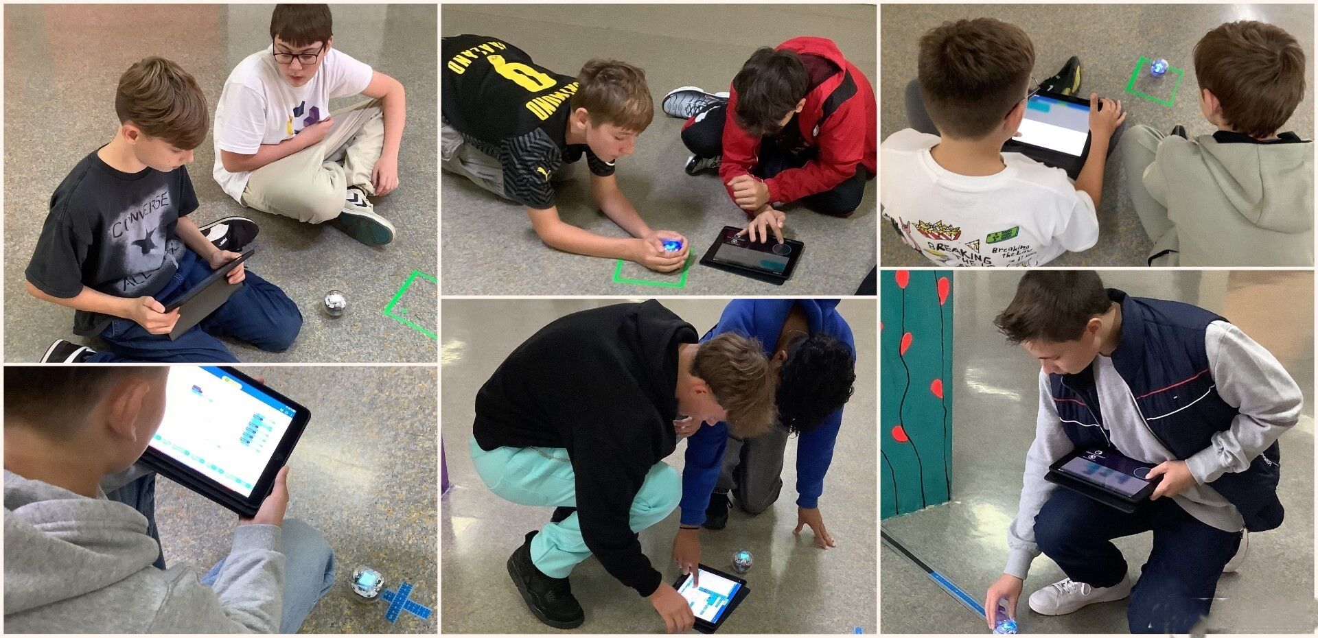 Nachdem die kleinen Roboterkugeln (Sphero Bolt) auch mal mit dem iPad als Steuerung durch die Gänge gefahren wurden, ging es an die Programmierung eines vorgegebenen Parcours und eines eigenen Projektes. Dabei mussten beispielsweise eine bestimmte Strecke eingehalten, ein Hindernis umfahren und bestimmte Ereignisse programmiert werden. Es wurden kreative Matrixanzeigen, Geräuschsignale bei Kollisionen, ausgeklügelte Hindernisstrecken und anspruchsvolle Schleifen programmiert.