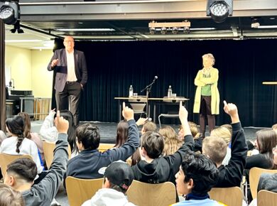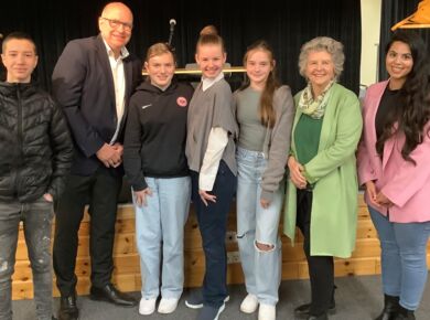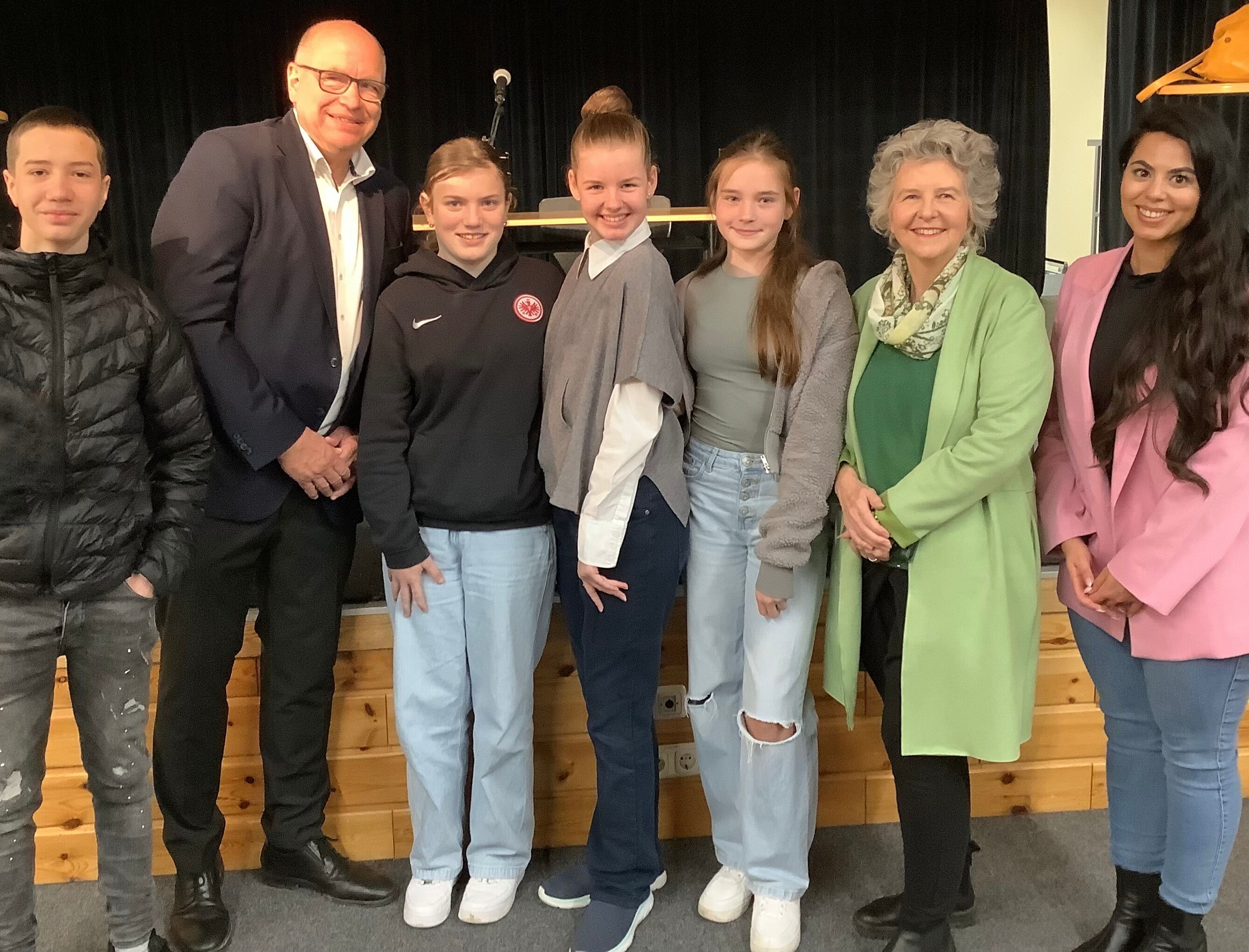 So stellte Albrecht Kündiger, seines Zeichens Bürgermeister der Stadt Kelkheim, in diesem Rahmen seine Verantwortungsbereiche vor und trat in einen regen Austausch mit dem interessierten Publikum, in dessen Verlauf er auch persönliche Fragen beantwortete. Zudem wurde die Veranstaltung durch einen Besuch der Leiterin des Amtes für Jugend und Integration bereichert. Sie nutzte den Austausch mit den Schülerinnen und Schülern, um verschiedene Projekte vorzustellen, mit denen sich junge Menschen innerhalb der Kommune einbringen können, wie etwa das Jugendzentrum oder das Jugendforum.