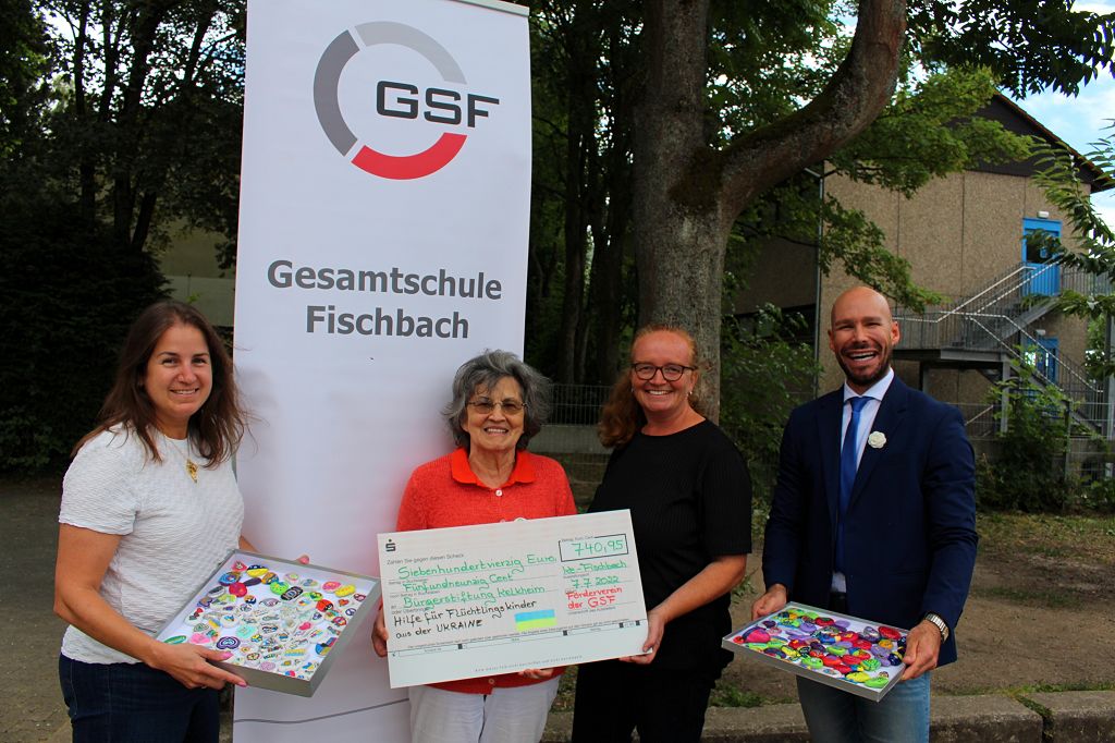 Endlich ist es soweit. Der Förderverein hat das Geld, das durch den Verkauf der bemalten Steine und durch zusätzliche Spenden eingenommen wurde, an die Bürgerstiftung Kelkheim überwiesen. Der symbolische Scheck über 740,95 € wurde von Frau Dr. Bonczkowitz bei strahlendem Wetter freudig entgegengenommen.