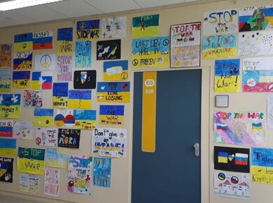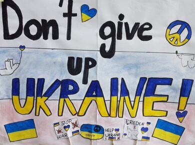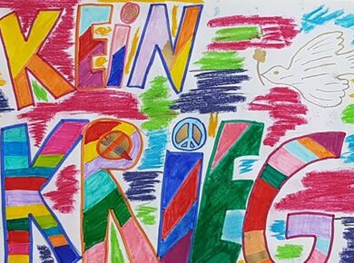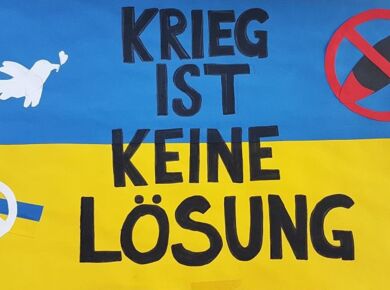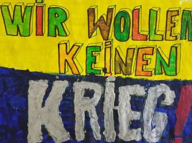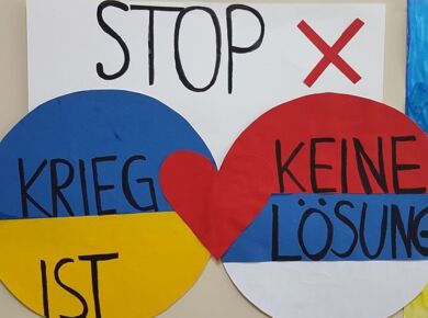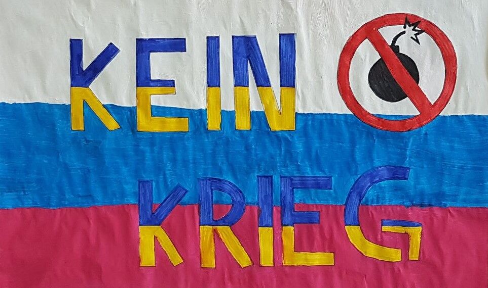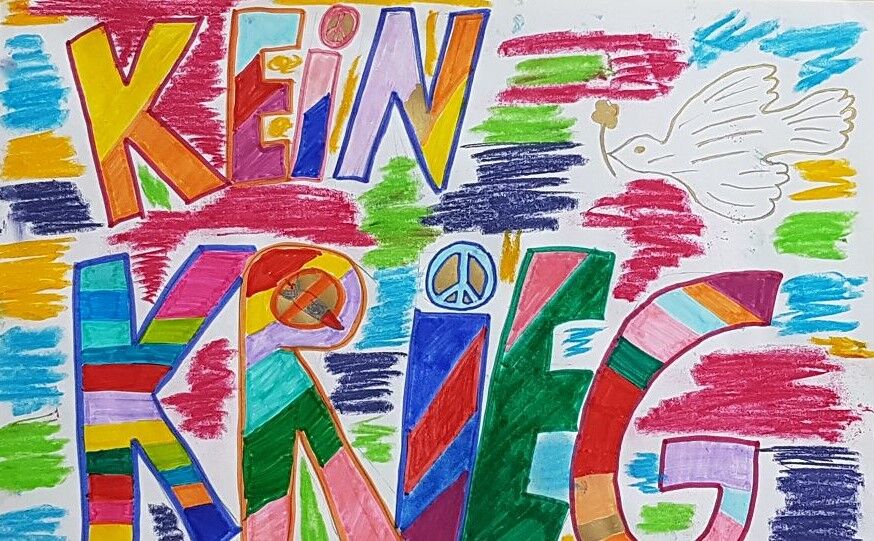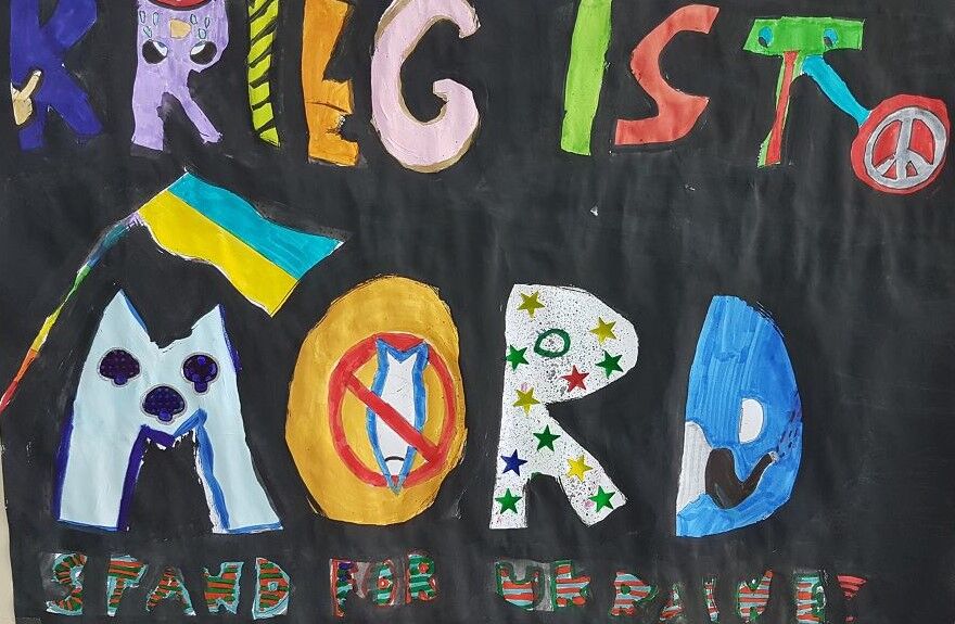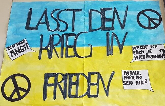 Ein Kunstprojekt macht es deutlich: Die Schülerinnen und Schüler der GSF wollen keinen Krieg in der Ukraine!