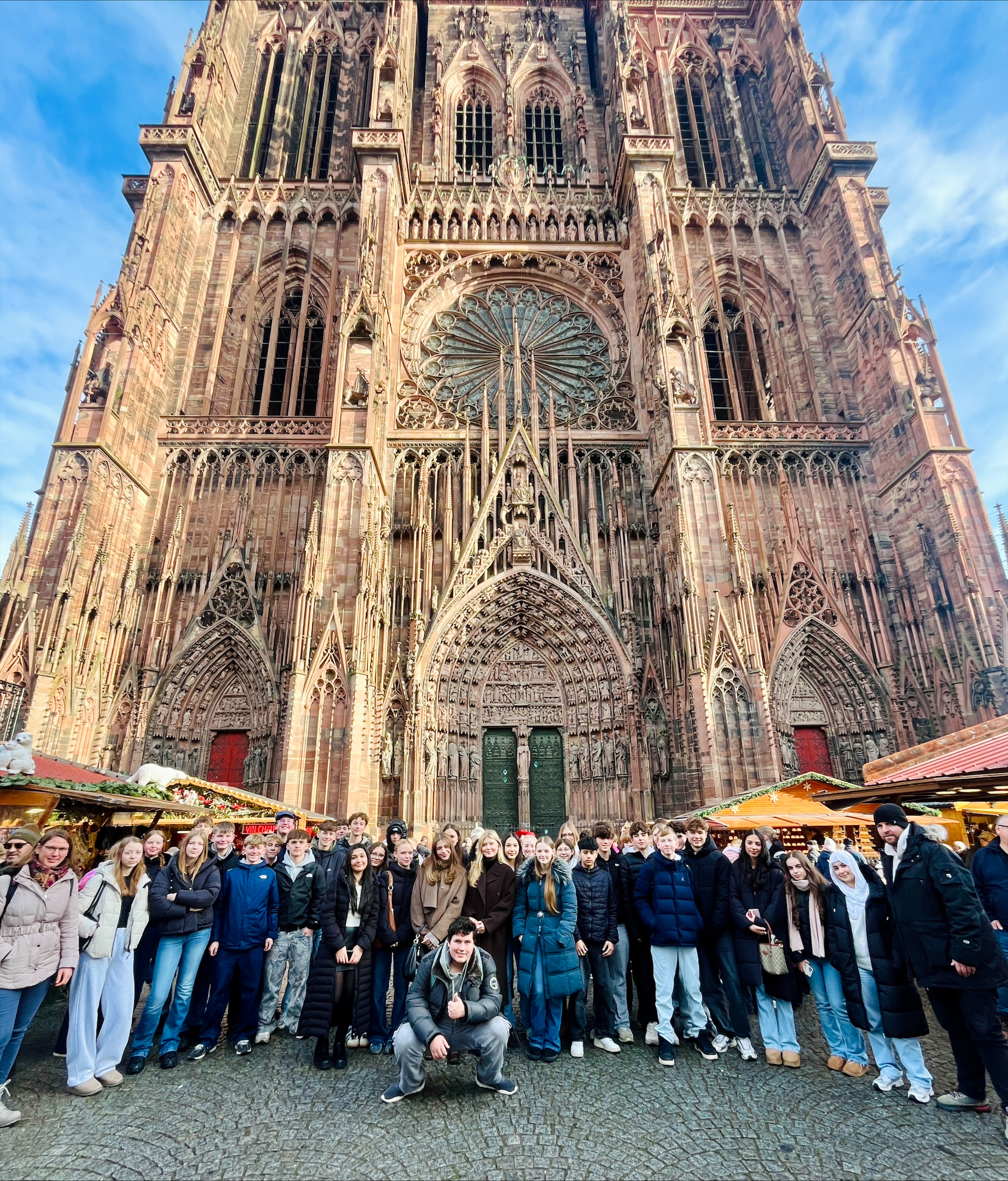 Für die Französischlernenden der Jahrgänge 9 und 10 endete das Jahr 2025 mit einem gemeinsamen Ausflug nach Straßburg. Am vorletzten Schultag vor den Weihnachtsferien besuchten wir die „Weihnachtshauptstadt Europas“. Neben einer gemeinsamen Besichtigung des Straßburger Münsters führte eine Foto-Rallye die Schülerinnen und Schüler zu weiteren Sehenswürdigkeiten der elsässischen Metropole, darunter das Viertel „La Petite France“ und das Haus Kammerzell. Besonders beeindruckt hat uns der stimmungsvolle Weihnachtsmarkt und natürlich der große Weihnachtsbaum auf der Place Kléber.