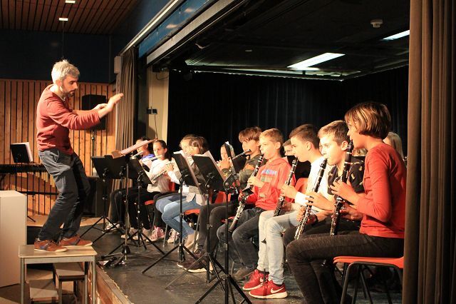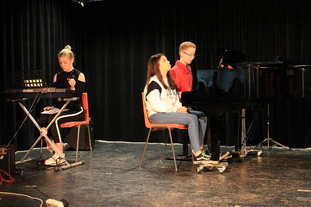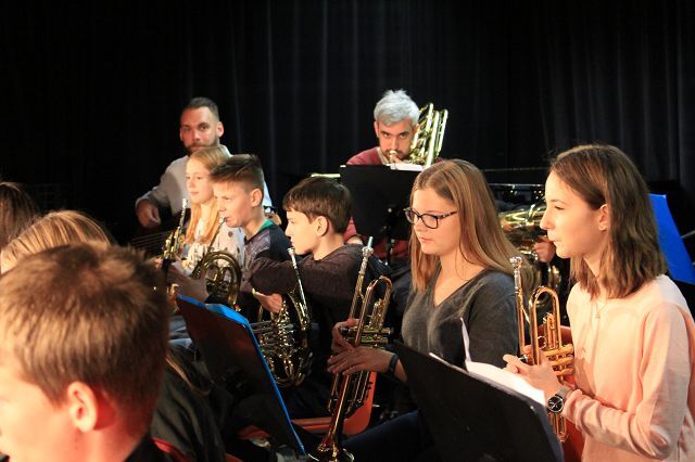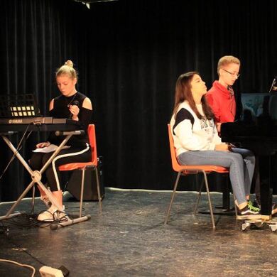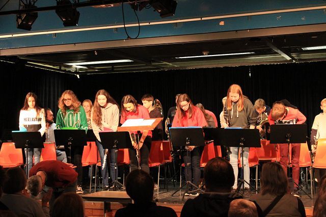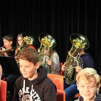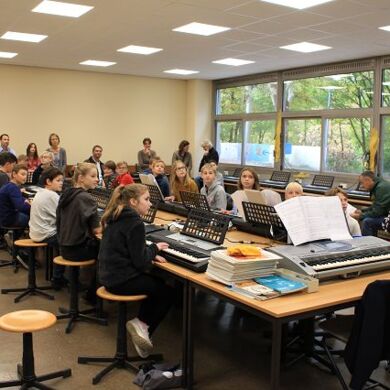 Zur offiziellen Eröffnung des Infotages bildeten die Bläserklasse der Jahrgangsstufe 6 und das Blasorchester den musikalischen Rahmen mit ihren Vorträgen sowie drei Schülerinnen und Schüler der Klasse G10b mit einem selbstkomponierten Musikstück, das als ein Ergebnis des Projektes „Schreib Deinen Song“ während der Projektwoche im Sommer entstanden war. Die Sitzplätze in der Aula reichten bei weitem wieder nicht für alle Besuchern aus. Herr List und Frau Klos führten seitens der Schulleitung durch zwei Informationsveranstaltungen, die von interessierten Eltern sehr gut besucht wurden. Ausstellungen und Infostände, u.a. des schuleigenen Fördervereins und auch der Oberstufe der EDS Kelkheim, rundeten das Angebot ab.