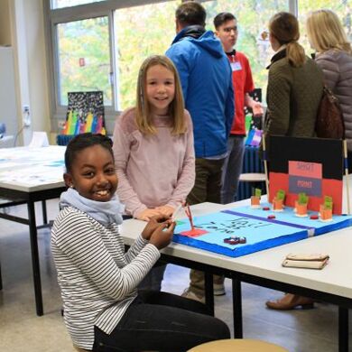 Sehr viele Besucher, Eltern wie Kinder, nahmen die Möglichkeit wahr, an Führungen durch das Haus teilzunehmen, die von Schülerinnen und Schülern der GSF geleitet wurden. Die zahlreichen und ansprechenden Mitmachstationen wurden dabei ebenso angelaufen und besucht wie auch die besonderen Räume und das Außengelände der Schule.