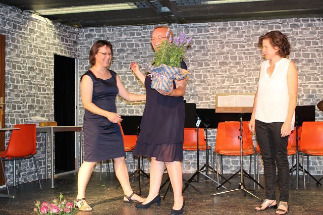 Da neben den Schülerinnen und Schülern auch die Elternbeiräte der Klassen die Schule verlassen, wurden auch diese von der Schulelternbeirätin herzlich verabschiedet. Auch sie verlässt nach zehnjähriger intensiver Tätigkeit erst als Elternbeirat und später auch als Schulelternbeirätin die Schule und wurde deshalb von Herrn List ganz besonders herzlich verabschiedet.